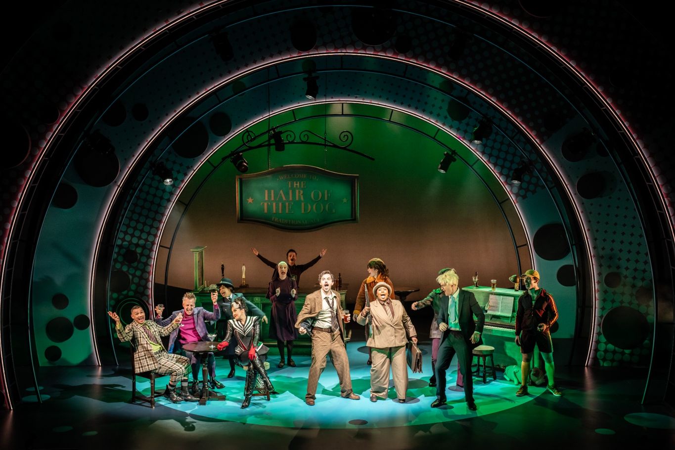 The set, designed by David Woodhead offered up some impressive backdrops, firstly to the 'Puppy Love Dogs Home' where we first meet a multitude of dogs waiting for their forever homes, to the inside of Tom (Samuel Thomas) and Danielle's (Jessie Elland) home, into the local pub, aptly named 'The Hair of the Dog' where the song 'Contemplate The Criminal' provided more light relief, especially with one ensemble member bearing a strong resemblance to Boris Johnson and branding himself a criminal. We also, of course entered the 'Haus of De Vil' where Cruella's wicked items of clothing were created.
