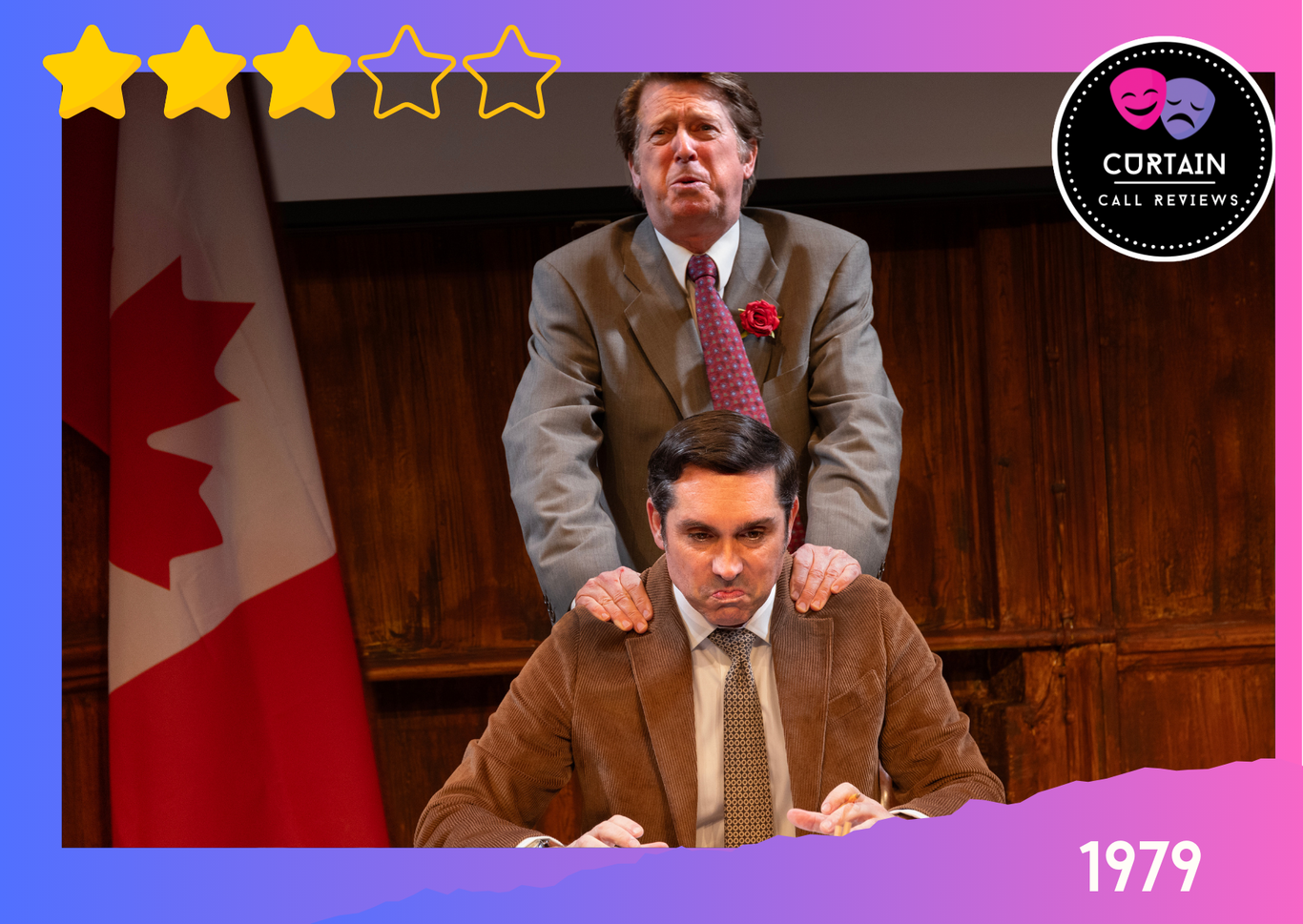 1979 is a snapshot of a very brief moment in Canada's political history, set during the brief months Joe Clark (Joseph May) was Prime Minister. Written by Michael Healey and directed by Jimmy Walters, the play goes by swiftly. Set in the Prime Minister's Office with wooden walls, a large wooden desk and an incredible sound system, Joe blasts music to comfort himself as the clock ticks towards a momentous parliamentary vote that could end his term.