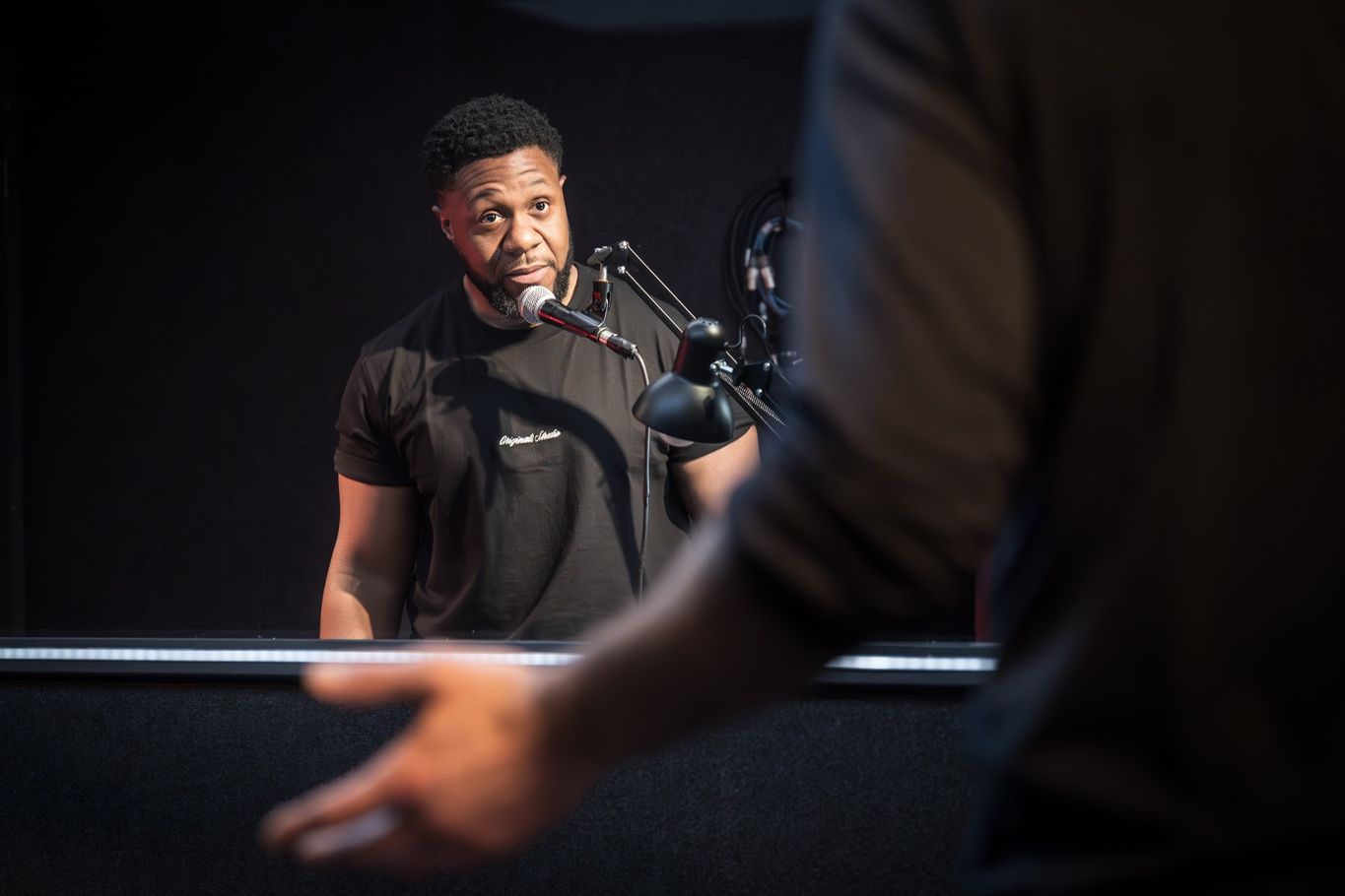 Much like the theatrical version of Susan Hill’s The Woman in Black, the show has a “story within a story” structure. George is a jobbing actor who arrives late to a recording studio after booking the job to record a ghost story. He has not seen the script and knows very little about the job.