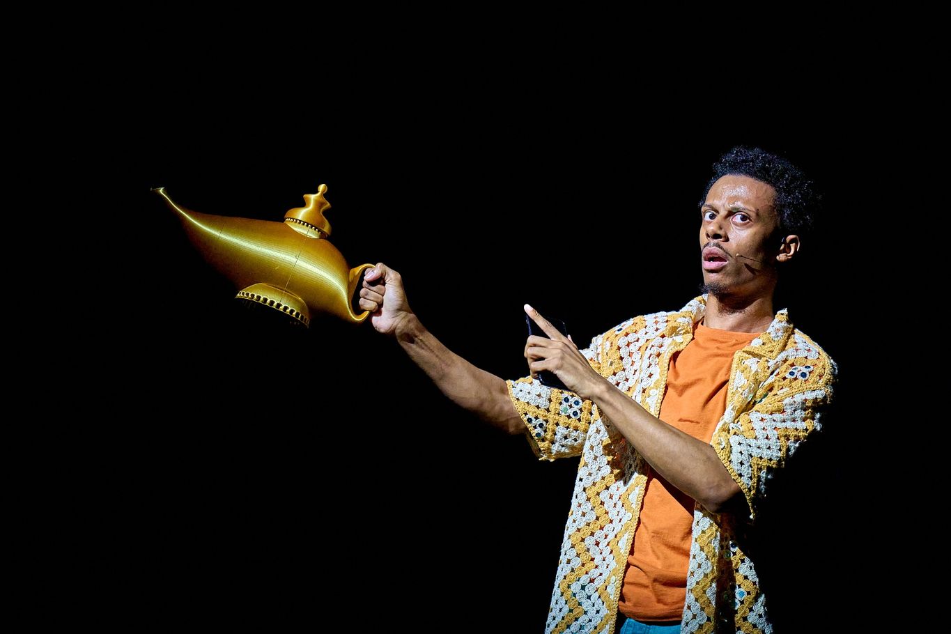The Lyric Theatre Hammersmith has certainly gone all in for Aladdin this Christmas season. Written by Sonia Jalaly and directed by Nicholai La Barrie the show flies at a pace that keeps all entertained. Without being the smoothest of productions – crunching between scenes without any sense of apology – both Jalaly and La Barrie milk the genre for all that it is worth –, to the delight of the Hammersmith crowd. The story has enough of the old for us to know we are watching Aladdin with a freshness that makes it feel very 2025.