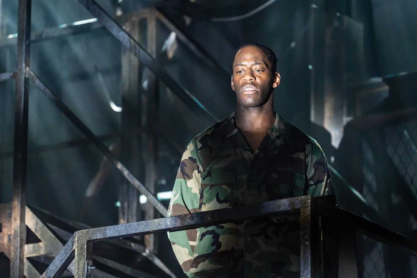 Industrial cage structures surround the stage depicting the training centre while bursts of neon lighting (Ben Cracknell) are used to support settings such as a TJ’s pub and a motel. Lighting is a particular highlight of the production with several striking atmospheric moments being created. The impressive set design and lighting lends well to the production and ensures each scene flows into one another seamlessly, even if smoke effects are greatly overused.