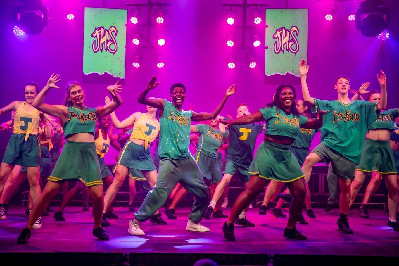 The show brings us some high energy choreography by Director Pollyann Tanner. These routines are full on, using cheerleading routines as their centre with impressive lifts and backflips. The stage is awash with performers, all of whom handle the speed of the routines well. These are big production numbers that deliver and the whole cast should be commended.