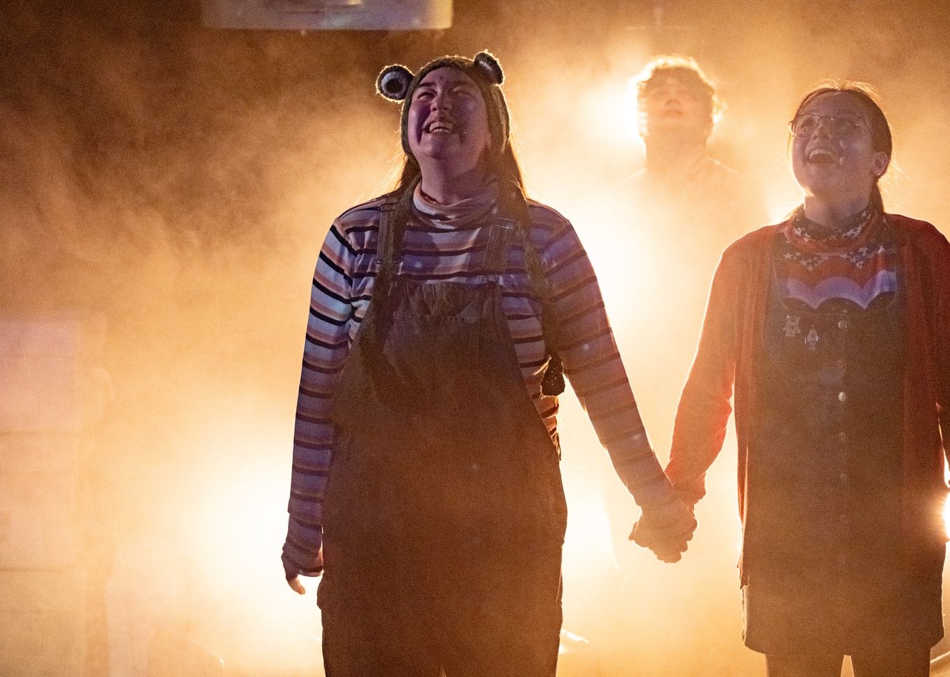 The performers are also not shy about involving the audience, whether to relieve tension when Kit hands her beloved frog hat to a viewer for safekeeping before a particularly harrowing scene, or to increase connection as audience members are asked to become stakeholders’ in the girls’ fate.