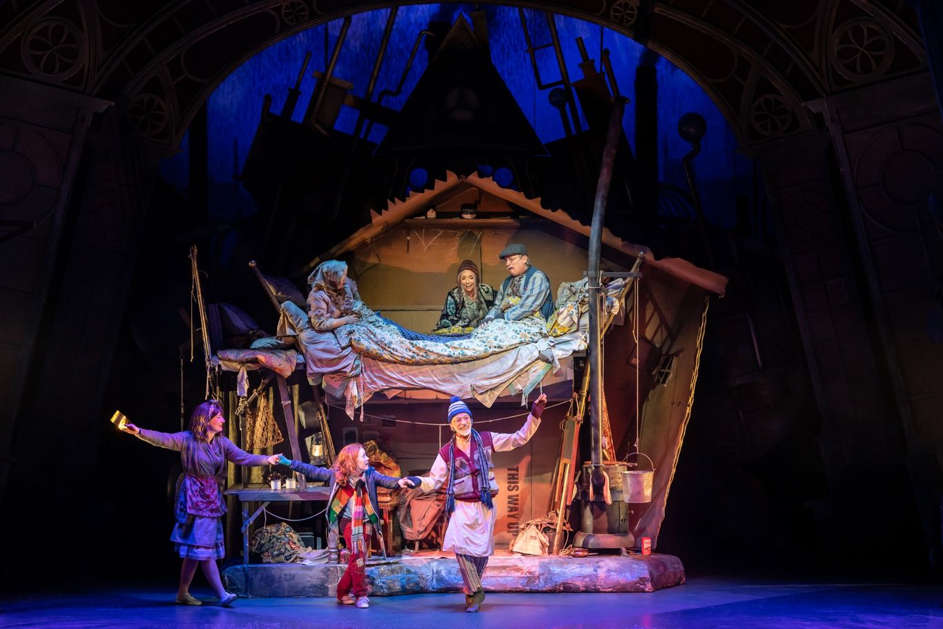 The staging designed by Simon Higlett was effective in its portrayal of the inside of the run-down Bucket residence to the inside of the factory which relied heavily on LED projections to bring this world of wonder to the stage. It’s a massive feat to recreate such iconic rooms as the ‘Chocolate Room’ and the ‘Nut Room’, so with the use of fantastic video design by Simon Wainwright, this was achieved.