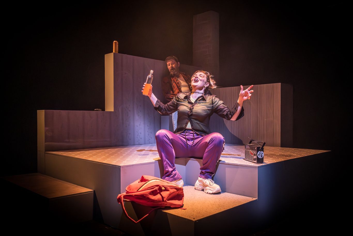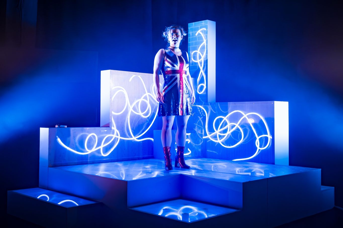 The direction by Kimberley Sykes often had motifs like the journey to the nightclub. The route never changed but each time the people taking it had shifted a little from the time before (well that and the price of the bus). At times this became a bit formulaic, only so many times can an audience watch the same motif play out. While entertaining, in direction this felt too much like a repetition across the story. The set itself designed by Hannah Sibai allows for movement. We have everything from the dancefloor to those dreaded stairs. Actors climb, stomp and crawl. Add in the lighting design by Jessie Addinall which lit from within and throughout. The club was alive and at times it felt like a real rave. Music too is pivotal, sound designer and composer Ben McQuigg really brought us the best of the best as we race through the 90s.