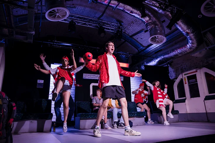 As we gather in the bar at the Turbine Theatre, Battersea a man clad in a bright orange waistcoat appears, loudhailer in hand to announce a delay to the departure of Cockfosters. It’s the beginning of an hours’ worth of chaos that is about to erupt on stage.
