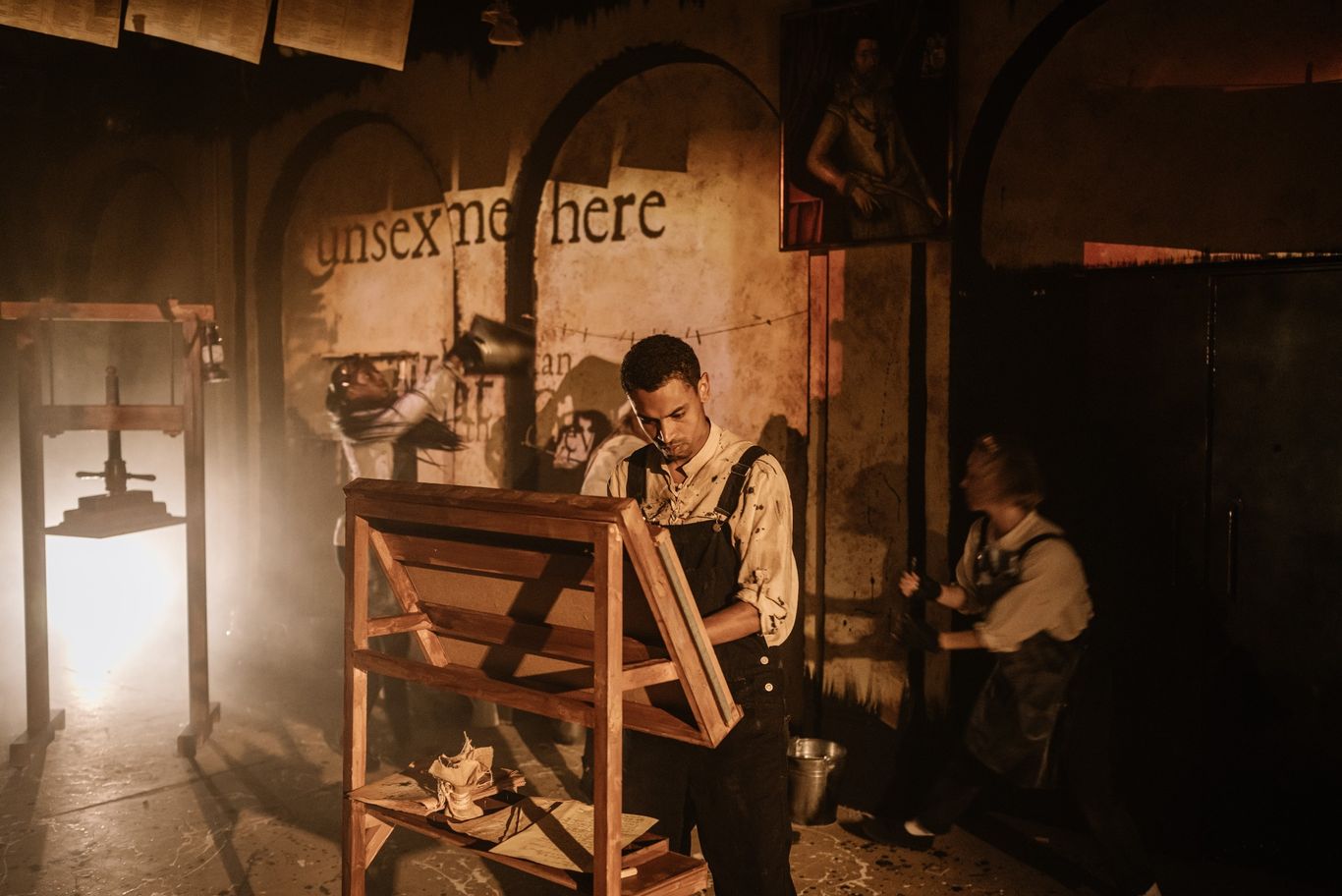 Tré Medley played the 17 year old John Leason with charm, vulnerability and well rounded light and shade. This allowed us to warm to his character quite quickly. David Monteith, who played Richard Bardolp, had some really pleasant moments too. His comic timing and colourful vocal range brought a fun and vibrant dynamic to the show. Personally, I found Kaffe Keating’s masterful acting to be wholly captivating. He embodied his character completely and I thoroughly enjoyed watching his character Isaac Jaggard evolve and soften subtly with every scene.