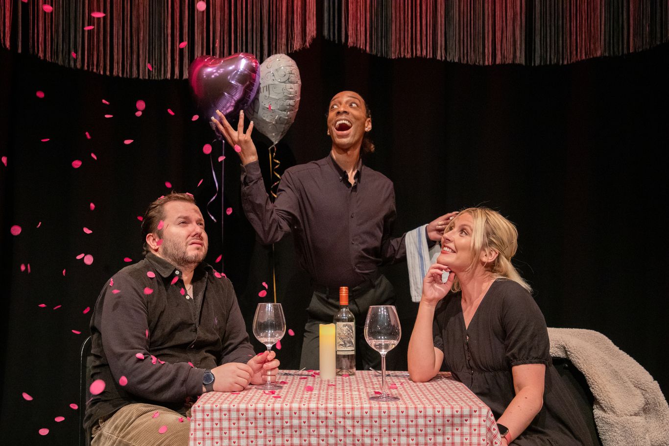 The play opens with Sam's character, Ben on the worst nightmare of all date nights. Helen, his partner of 15 years, played beautifully by Megan Edmondson, is anticipating a long-expected, but elusive marriage proposal while out on their anniversary dinner. Instead, Ben announces that he is bisexual, ends their relationship, flirts with the waiter, and…well, let’s say he gets to dessert before the end of the meal! As if all of that wasn’t complex enough, after Ben’s shock revelation, Helen announces that she is pregnant!