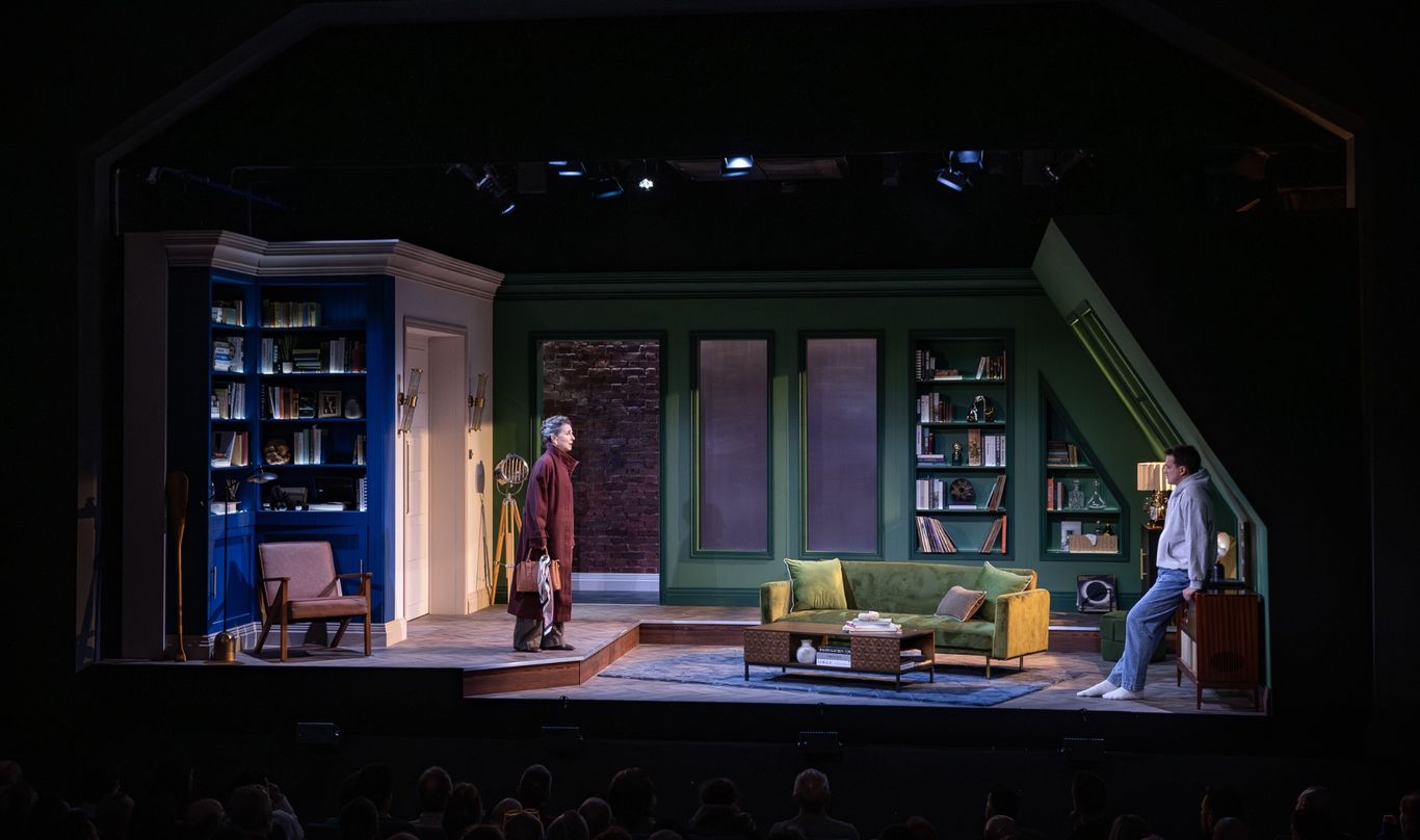 The action unfolds in Daniel and Mitchell’s apartment. Justin Williams (Set and Costume Designer) has created a space that immediately establishes character: dark, sophisticated walls; curated bookshelves; a mid-century record desk. It feels unmistakably like the home of a successful architect, but also somewhere warm and lived-in, a place where love resides as naturally as the furniture.