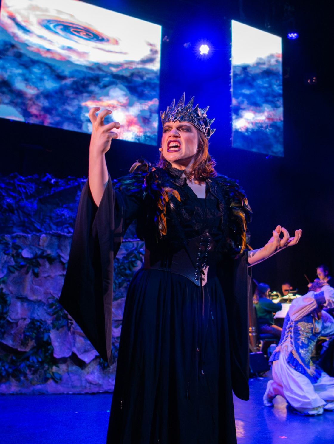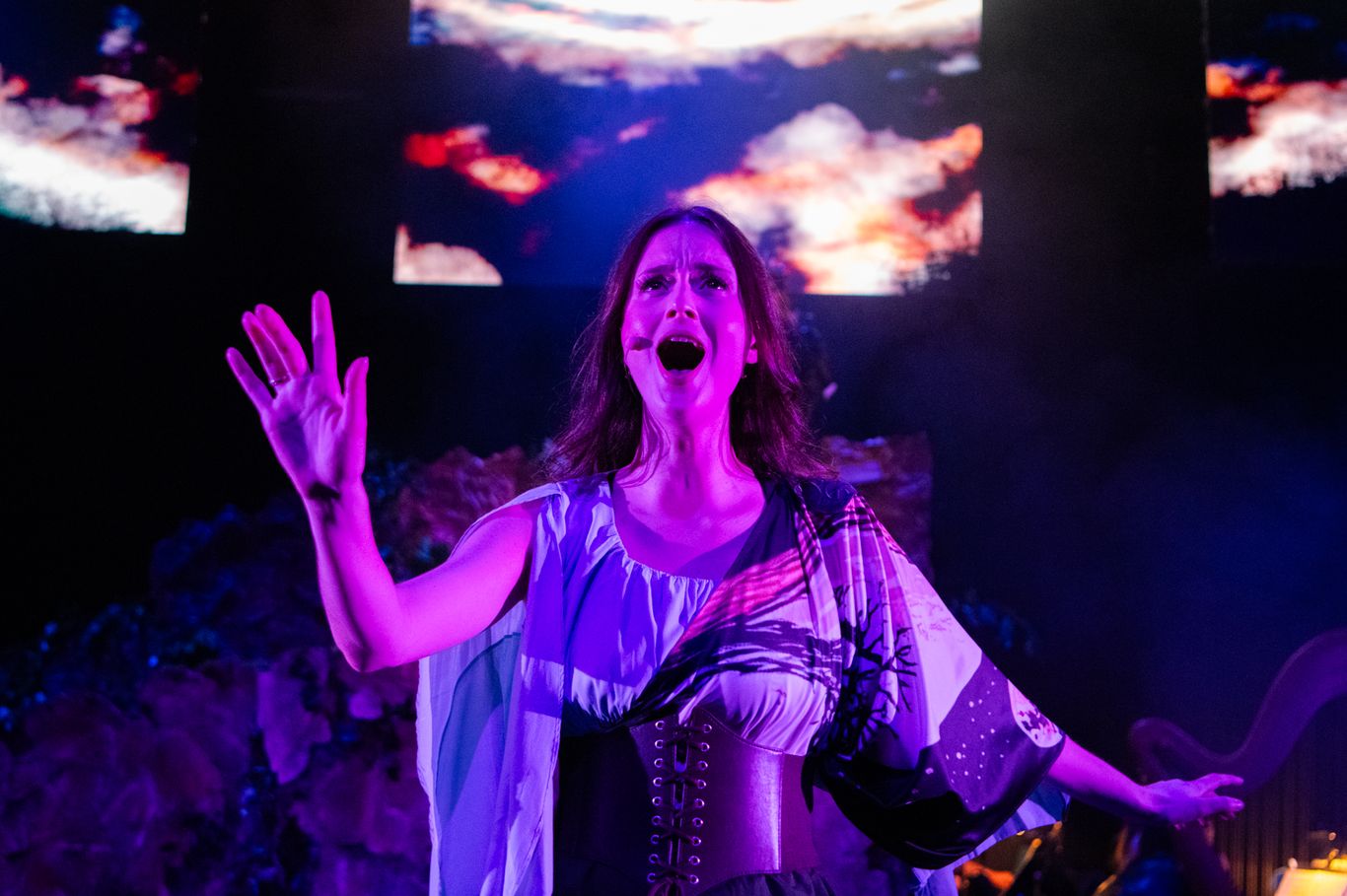 As a result of all this, we never get to focus on the main protagonist, Laura. While destined for greatness, she is deeply loved and admired for her beauty. When Laura comes to the realisation that the love she is chasing may be surface level, we remember the quote from the film The Swan Princess “What else?” We can see that she is a good friend, a valued member of the community and a beloved daughter. These elements are pushed to the sides and used as platforms to launch a song. Regarding the moments when Laura is frustrated with love and upset about her current situation, I wonder if we would feel those moments more earned if the character and general storyline were more developed. In my view, we needed to feel the stakes more. No one offers Laura resistance to this curse. Maggie, her friend, is more resentful about her own lack of love, delivering throwaway lines about wooden spoons. We see her father at the top and end of the show. I did not even know Laura was missing until she came home. It would have been a fantastic opportunity to have had the village sing collectively about missing Laura and what she means to the community. We do not even get the chance to dive into Gwendolethe’s magic. Her past relationship with Conor, Laura’s father, is sung about briefly with a fantastic tango between both actors. But once we launch into the time travel aspect, the story becomes a bit lost, which is a shame. I wanted to hear more about the folklore, where Laura is from and why she would do this in a world that seems fairly good. With no stakes, no major focus minus magic, we have nothing to root for.