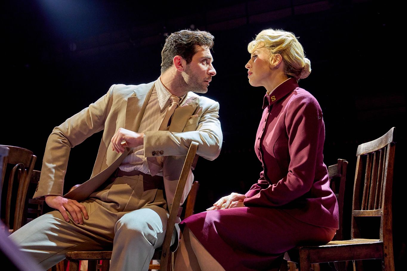 George Ioannides is smooth as the suave Sky Masterson and hits all the right notes in “Luck Be a Lady” and with Save-A-Soul Mission Sergeant Sarah Brown (Celinde Schoenmaker). The chemistry between Sky and Sarah crackles and we believe that the pious missionary would fall for the gambler’s charms. Schoenmaker (who continues from the original cast) brings the timeless glamour of a 1950s Hollywood movie star to this part and stood out for me as she did when I first saw it. Her beautiful melodic voice marinates the ballad, “I’ve Never Been in Love Before” in romance.