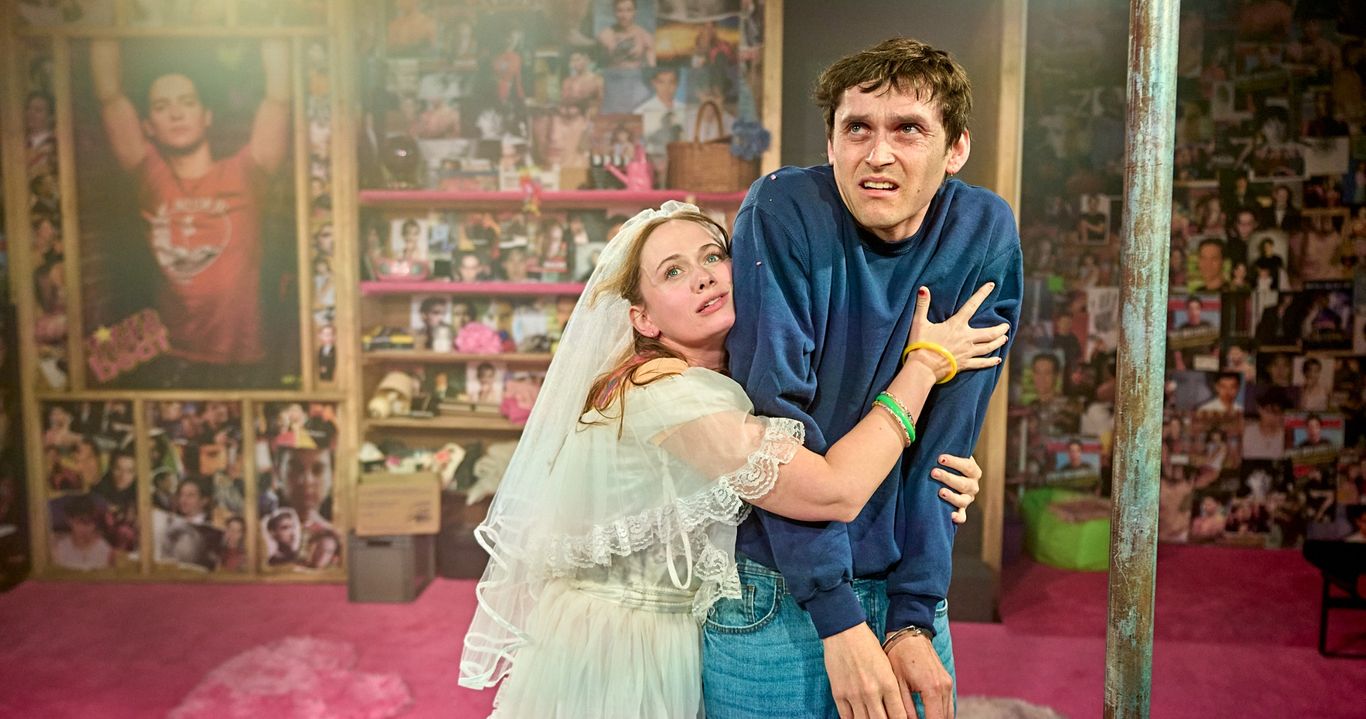 She has developed an obsession with Tobey Maguire (Anders Hayward), most famed for his role in ‘Spiderman’, she had adorned her basement in cut-outs from magazines of his face, the entire theatre has been decorated as such, even before you enter the theatre there are chalk writings of ‘I Love You Tobey’ on the pavement outside, cardboard cutouts are dotted around the lobby and the bathrooms have been covered floor to ceiling of pictures of Tobey Maguire, you really do feel like you are entering the brain of a 14 year old girl. Shelby seeks solitude in the Tobey Maguire Fanclub of which she is the president...and she’s also kidnapped him from his dentist appointment and is keeping him handcuffed in her home...not the start to the play I was expecting.