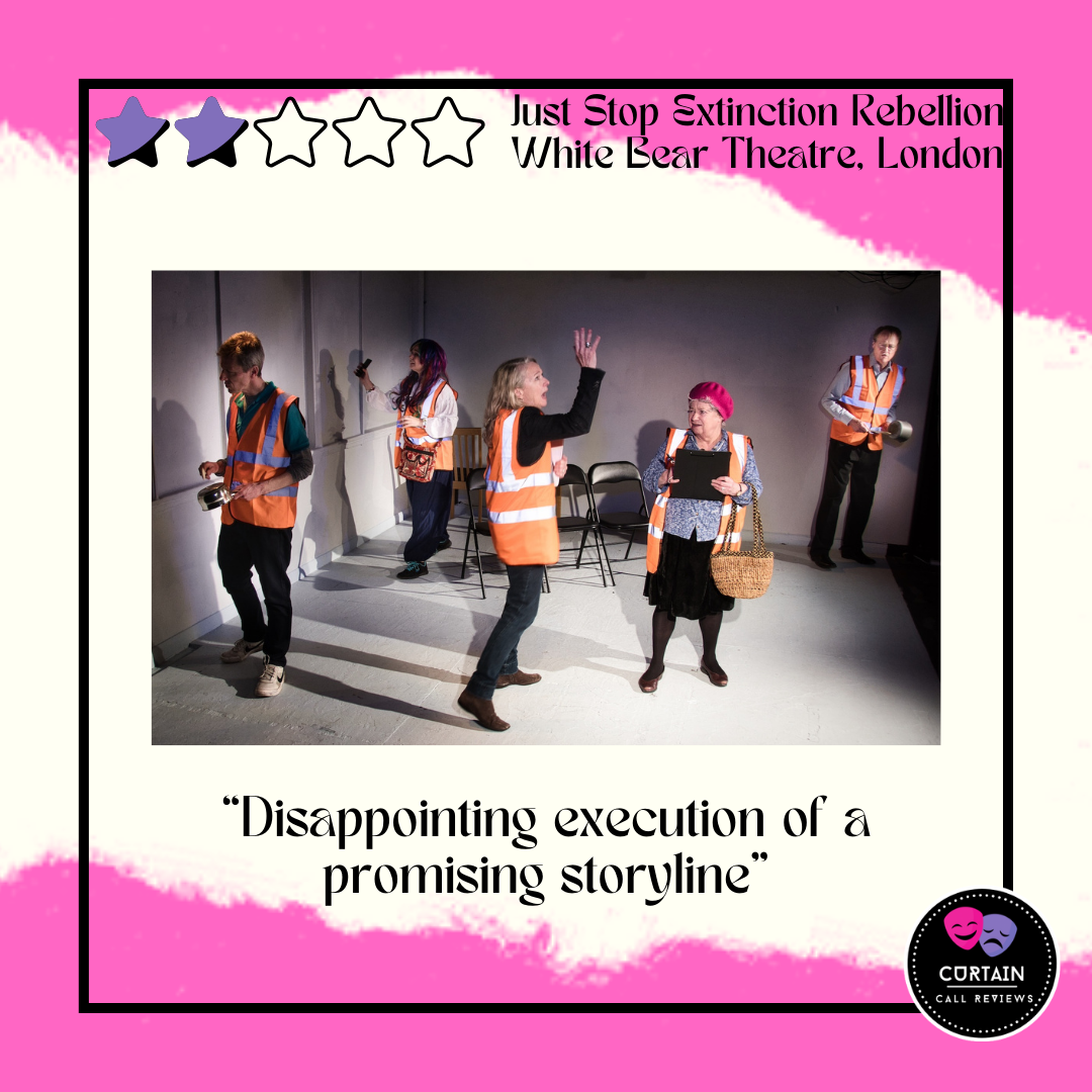 This show was reviewed on the 3rd February 2024. Just Stop Extinction Rebellion plays at the White Bear Theatre, London until the 10th February 2024. Tickets available here: Just Stop Extinction Rebellion | The White Bear Theatre