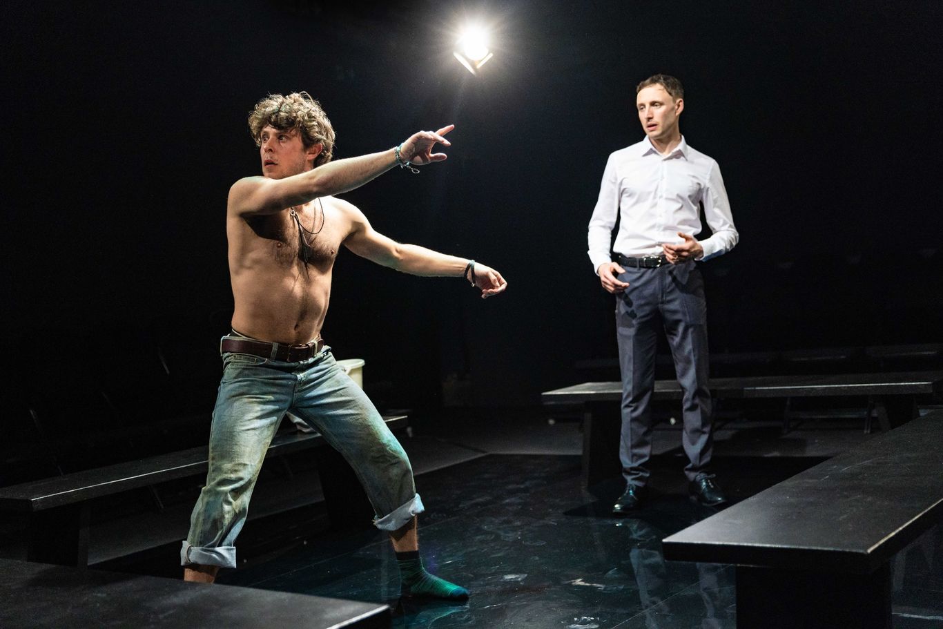 Set and costume design by Kit Hinchcliffe is simple but used to maximum effect. A theme throughout the play is the contrast between Steven and Barry. Steven wears a formal shirt, trousers and smart shoes whilst Barry wears battered Converse and a ripped t-shirt. As the plot advances and Steven unravels, small changes in his costume allow us a glimpse into his spiralling mindset, rolling up the sleeves and untucking the shirt.