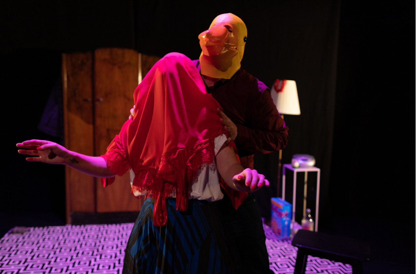 The trauma conveyed throughout the play was palpable, and the 70-minute runtime was a merciful decision, as a longer duration might have been overwhelming. Lie Low tackles a wealth of heavy topics, including alcoholism, potential rape, and incest. These serious themes are juxtaposed with surreal and somewhat absurd dance sequences, featuring Finnegan in a latex duck mask, adding a bizarre and intriguing dimension to production.