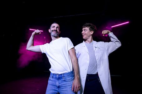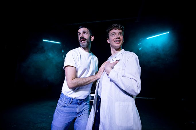 There are other moments that feel very jarring and like they do not fit into the show, in particular the scene where Brian takes his Doctor through a new idea and they begin singing together, the audience are then invited to join in with a sing along of Madonna’s hit ‘Cherish’ with the words projected on stage like a karaoke club just feels awkward and un-funny.