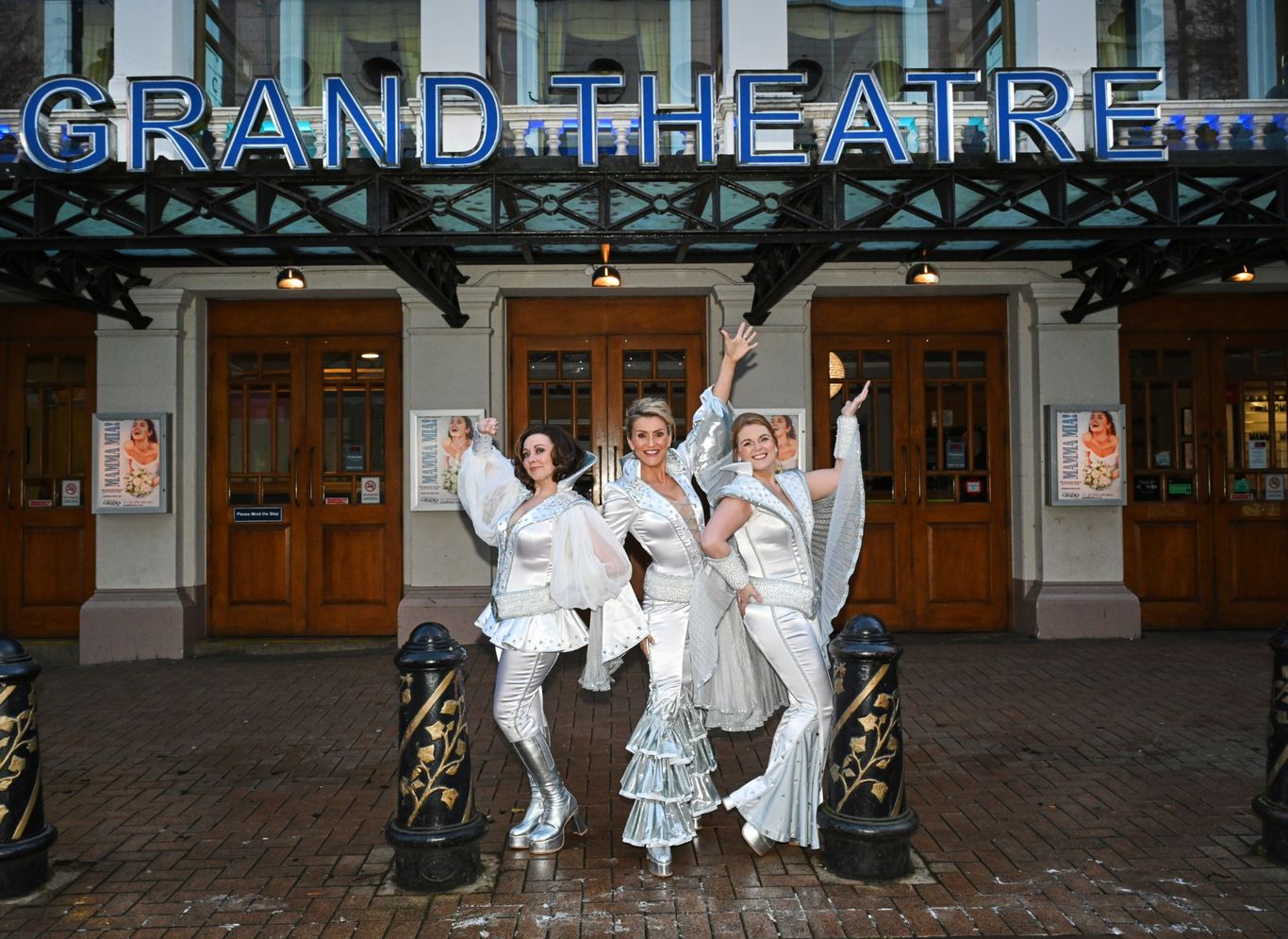 The Dynamos played by Sara Poyzer (Donna), Sarah Earnshaw (Tanya) and Nicky Swift (Rosie) posed in their Super Trouper outfits to launch the show outside the Grand Theatre.