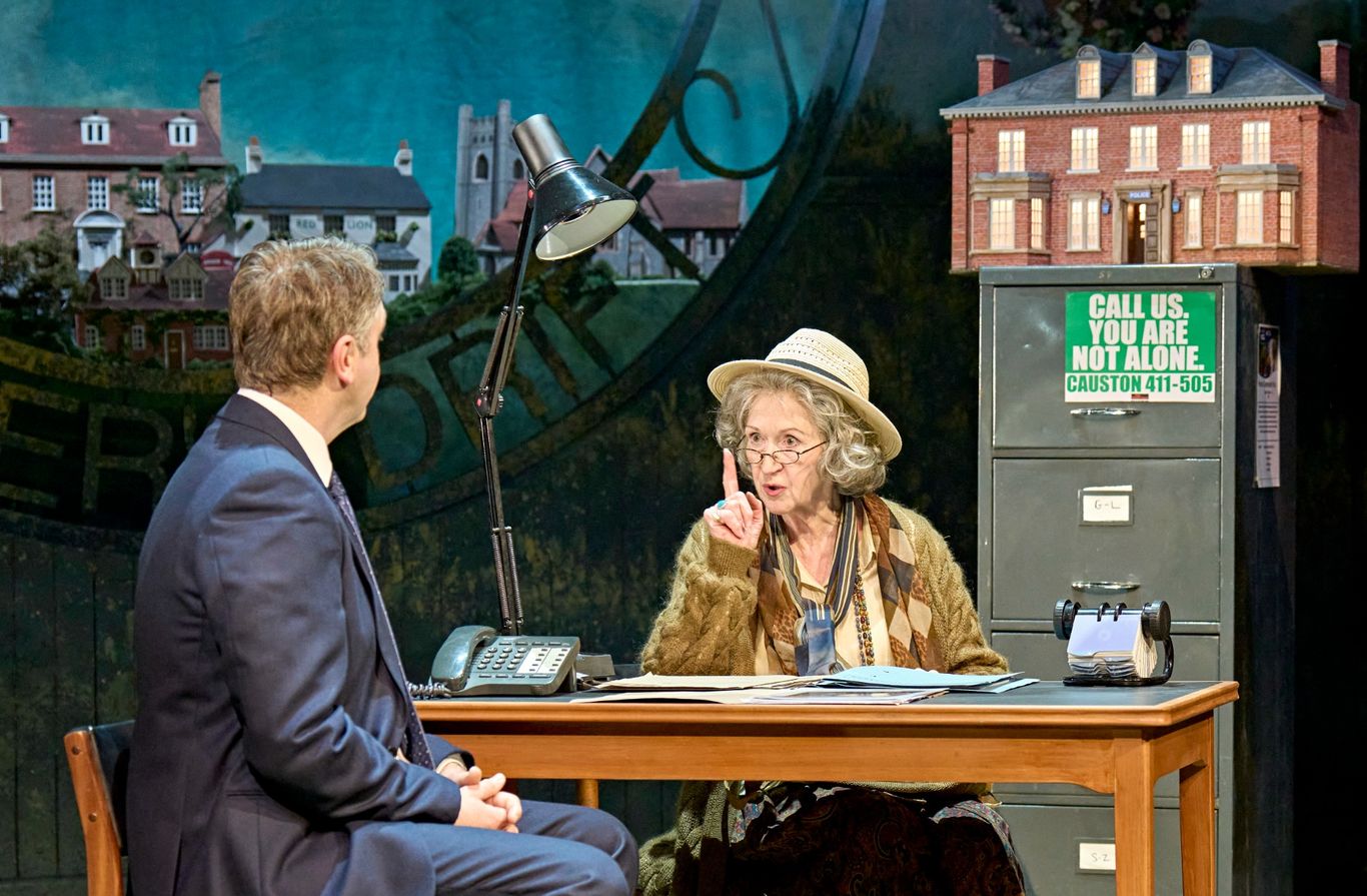 David Woodhead’s set is a triumph of Englishness. Cottage walls sliding like gossip, curtains that conceal more than they reveal and everything moves with a theatrical sleight of hand. This Badger’s Drift doesn’t just translate a beloved TV show, it reinvents it. It’s both a parody and a eulogy, a love letter to English eccentricity with blood spatters on the furniture.