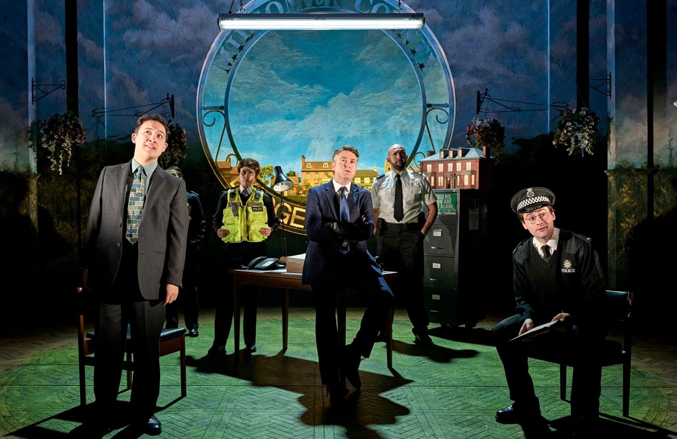 Casey now promoted from the television’s DS Troy to the trench coated Inspector, carries the production with understated wit. There’s an irony to watching the former sidekick become the master as his calm precision anchors a world of chaos and eccentricity. Meanwhile side kick, Bradwell’s Sergeant Gavin Troy offers all the enthusiasm even if he is standing firmly in the shadow of his boss. Together, the duo are oddly touching, a double act in constant danger of tripping over another corpse, the energy together is perfect. Legrand does a good job playing Bellringer, she pops up and keeps the plot moving as all the suspects come out of the woodwork and considering it’s a small village there are a lot.