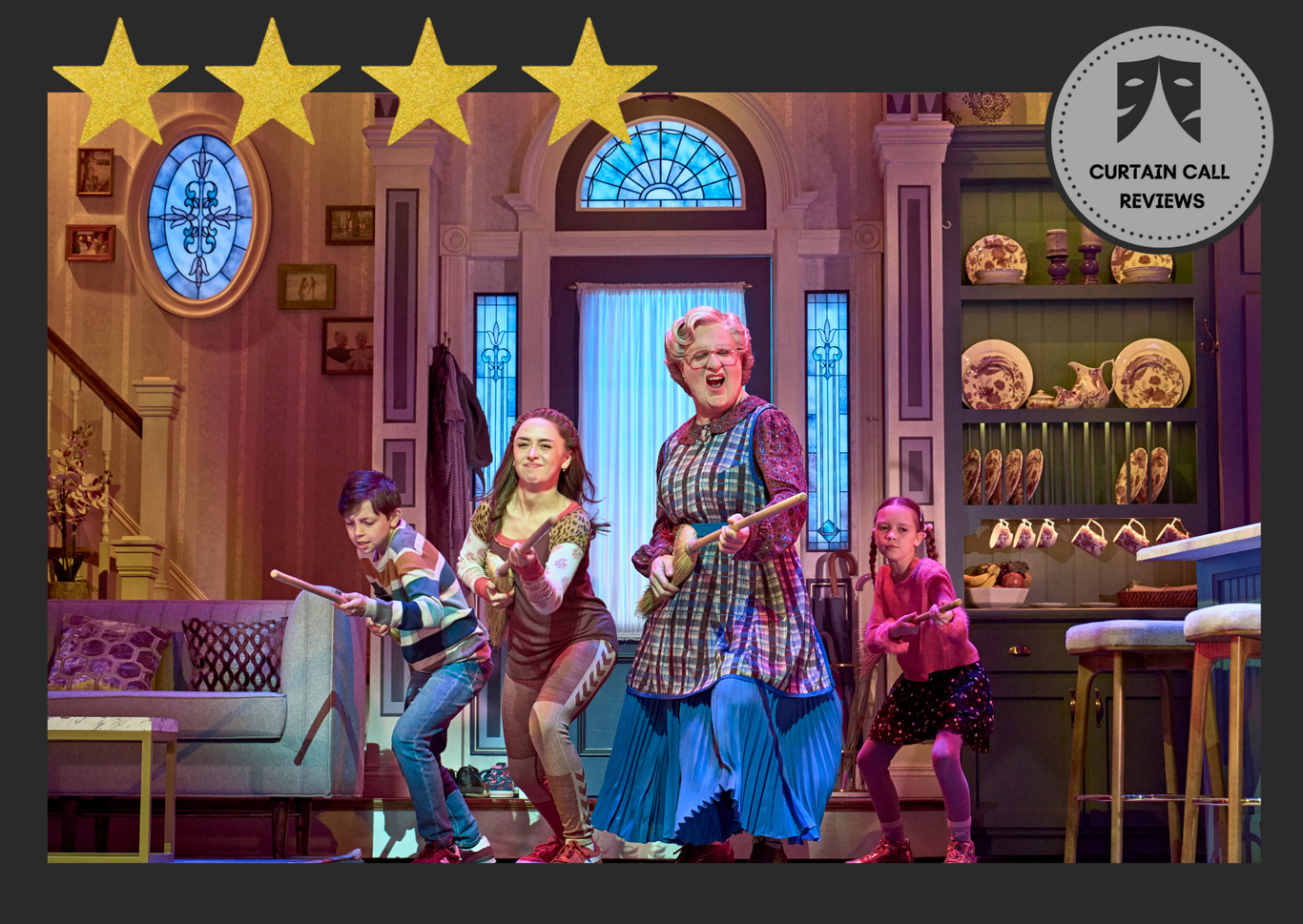Thirty years from Robin William’s portrayal of Mrs Doubtfire on the silver screen, Mrs Doubtfire has crossed the pond to take up residence at the Shaftesbury Theatre in London’s West End. The show is packed with fast moving, quick changes – not only from the leading actor, but also by the set, the ensemble and indeed the variety of music styles employed to tell the story.