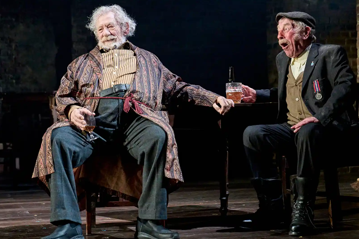 Let's be honest, Ian McKellen as Falstaff—that's all the publicity we need regarding this show. We shall start there. McKellen is fantastic; he commands the stage with just one cheeky smile or nuanced look to imply a little camp innuendo. As expected, he delivers a near-perfect performance. As Falstaff enters, he is heavily overweight with the use of a fat suit, and while McKellen plays this well, including sitting up and standing, he did appear quite nimble and light-footed. I would have liked to see a more grounded walk, though later in the text, there is a comment about him fleeing in such a way, and this could have influenced the director's choice.