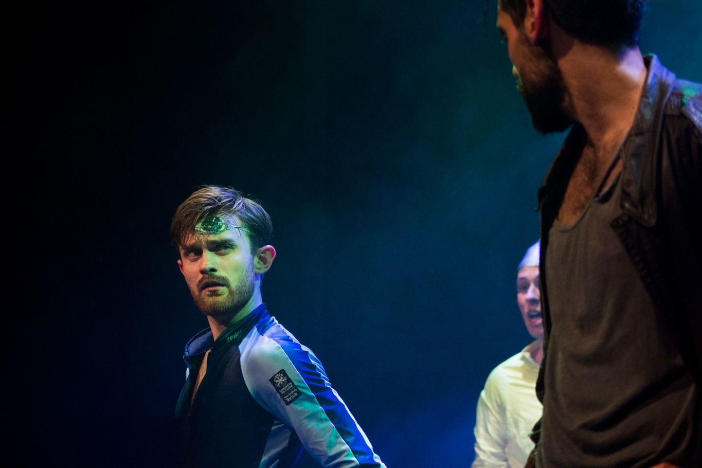 The cast of three makes up all the characters in this throwback 80s-style sci-fi show, ranging from robots, little children, hunky pilots, and everything in between. All three cast members were great performers, captivating our attention, and they couldn't have pulled it off without the precision of lighting hitting every cue to indicate change of location. The use of voice and physicality is quite something.