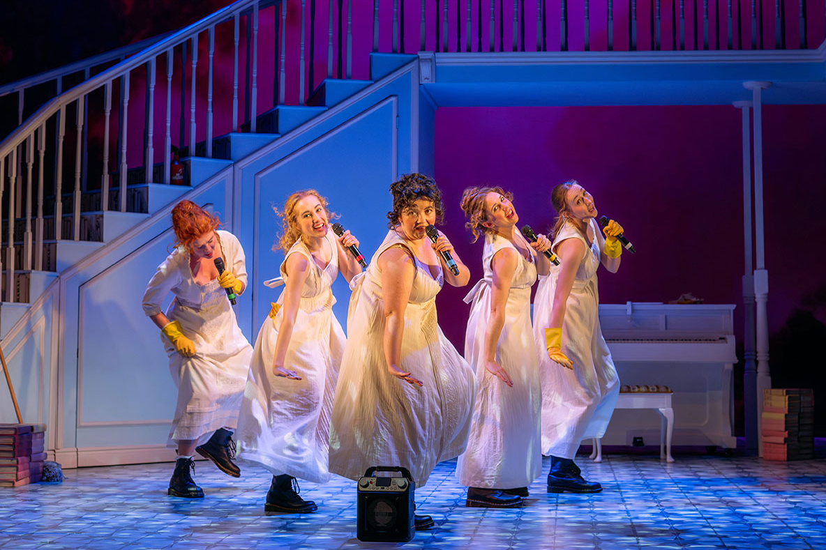 The incorporation of live music and familiar hit songs adds another layer of enjoyment. The use of simple instruments like recorders and glockenspiels, reminiscent of primary school music classes, alongside well-known tunes such as ‘Lady in Red’ included for a humorous nod to Lady de Bourgh and enhances the show's appeal and accessibility.