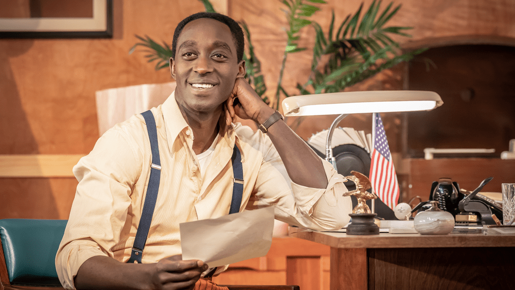 Ivanno Jeremiah embodies the refined Poitier with exactness and depth. From high octane arguments to quieter moments, Jeremiah showcases his agility. In anger he is dignified shouting he is “sick of living his life in a way that makes white people comfortable”. When he sits at the desk, pen in hand, contemplating, he wipes away a tear and we see his pain. He nails the star’s recognisable voice. Credit is also due to the voice and dialect coach, Hazel Holder, for his precision. Poitier changed the way he spoke to navigate Hollywood and to illustrate this, Jeremiah slips into Sidney’s natural Bahamian accent in the raw moments of rage and upset. I hadn’t heard the phrase Code Switching before, but I understand what it is now.