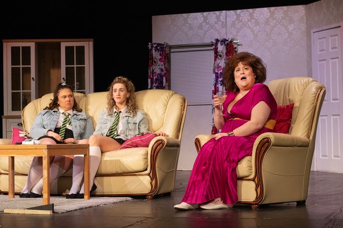 Scenes and staging were reminiscent of the 80’s if a little sparse. Minimalist staging was initially effective in the opening of act one with nothing more than Bob’s car on stage and a lengthy amount of time focused on this scene allowed the actors to shine. However as the play progressed, the stage at times felt bare with the majority of action taking place centre stage. We are taken from Bob’s car to the home of Sue which is nothing more than two sofas, a lamp and a bottle of Whiskey. Towards the end of Act two we see the only time all actors are on stage together as the culmination of the play is pantomime like with each character trying to out shine the others. It is at time messy and hard to distinguish who to focus on as the action bounces back and forth. Michelle and Sue’s mum in a bar is the highlight scene of the play. Chrissy Rock’s comedy prowess as a drunken parent is a masterclass in having the audience in the palm of their hand.