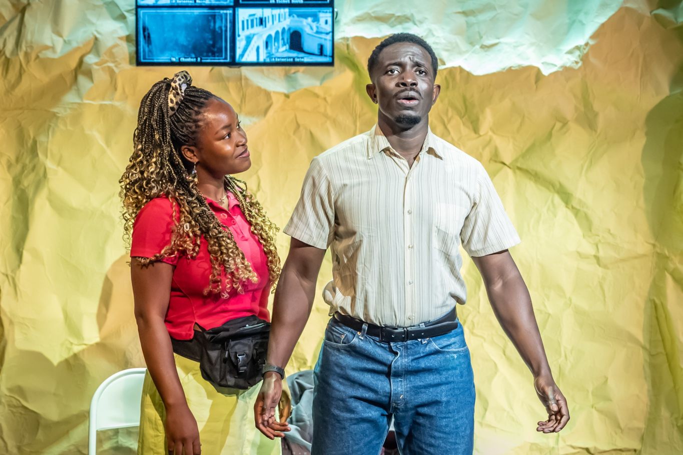 It is 2019, the Year of Return, marking four hundred years since the first enslaved Africans arrived in America. The play is set in Ghana’s Cape Coast Castle, where Ghanaians were held before being loaded into ships and sent across the Atlantic. Samuel (Fode Simbo) is our tour guide, tasked with giving tourists an authentic experience of the castle’s dark history. Alongside Orange (Bola Akeju), a, level-headed ticket officer, less troubled by the history, early twenties and aspiring to be a tour guide herself.