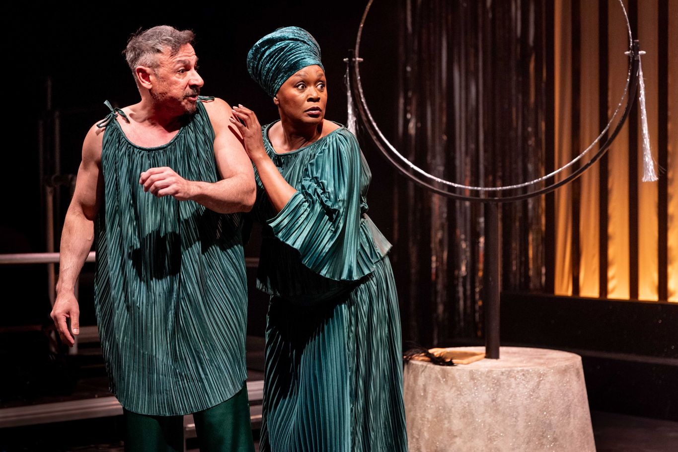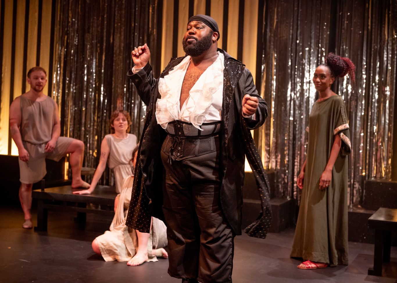 Akwafo sparkles on stage and struts between timelines. By quipping at the audience in a modern, camp tone, Akwafo is electric and full of laughter and fun! The narrator is then dragged into the narrative by the Gods in conversation which switches his tongue and brings him back into their world.