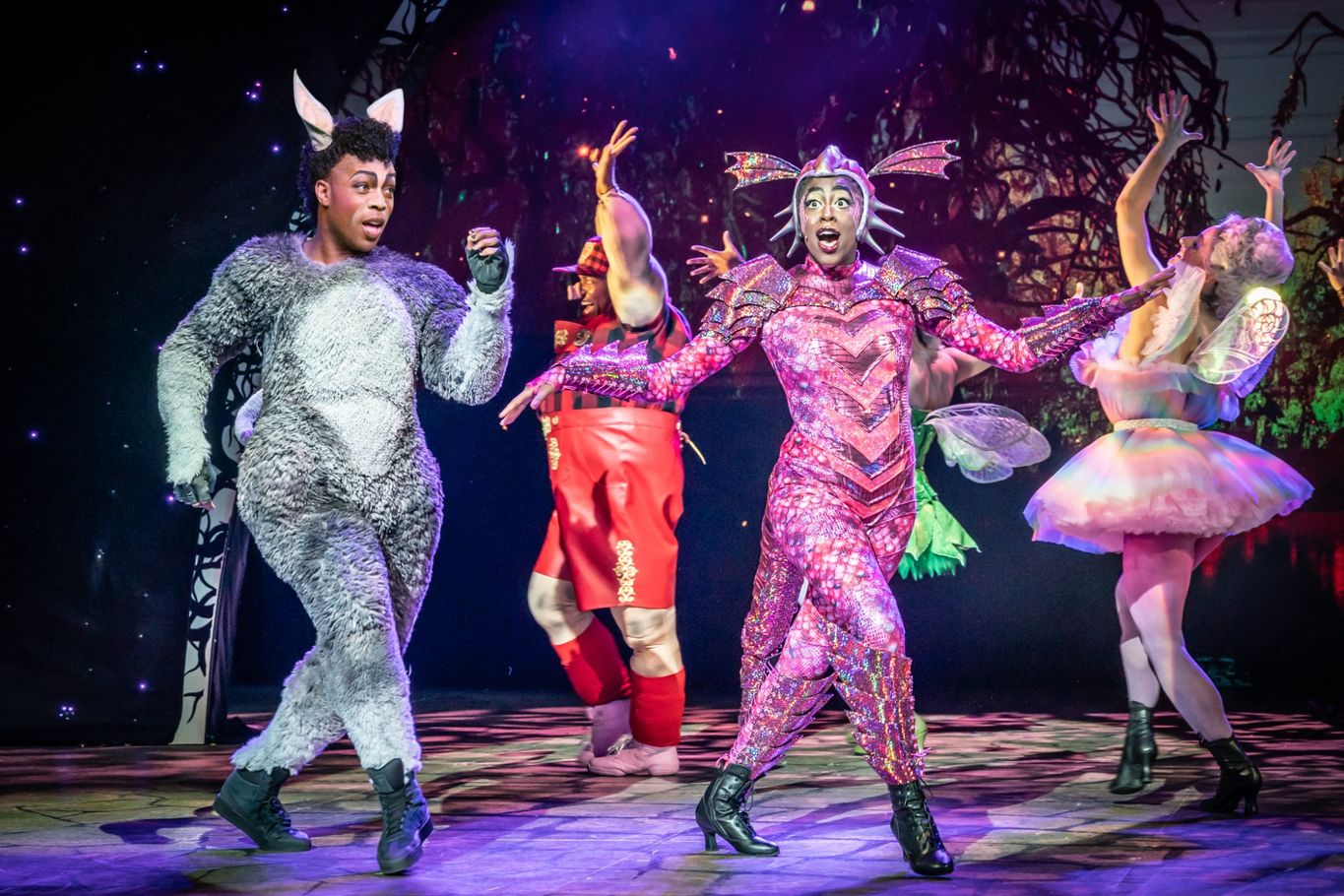 There have been a number of changes from previous productions of this well loved musical, and maybe some are more controversial than others. The dragon puppet is slightly smaller than before and it is a shame its mouth doesn’t work. Lord Farquaad is no longer played by an actor on his knees, so nearly every reference to him being short is gone. It does remove a lot of humour. However James Gillan really camps it up and does very well with the material.