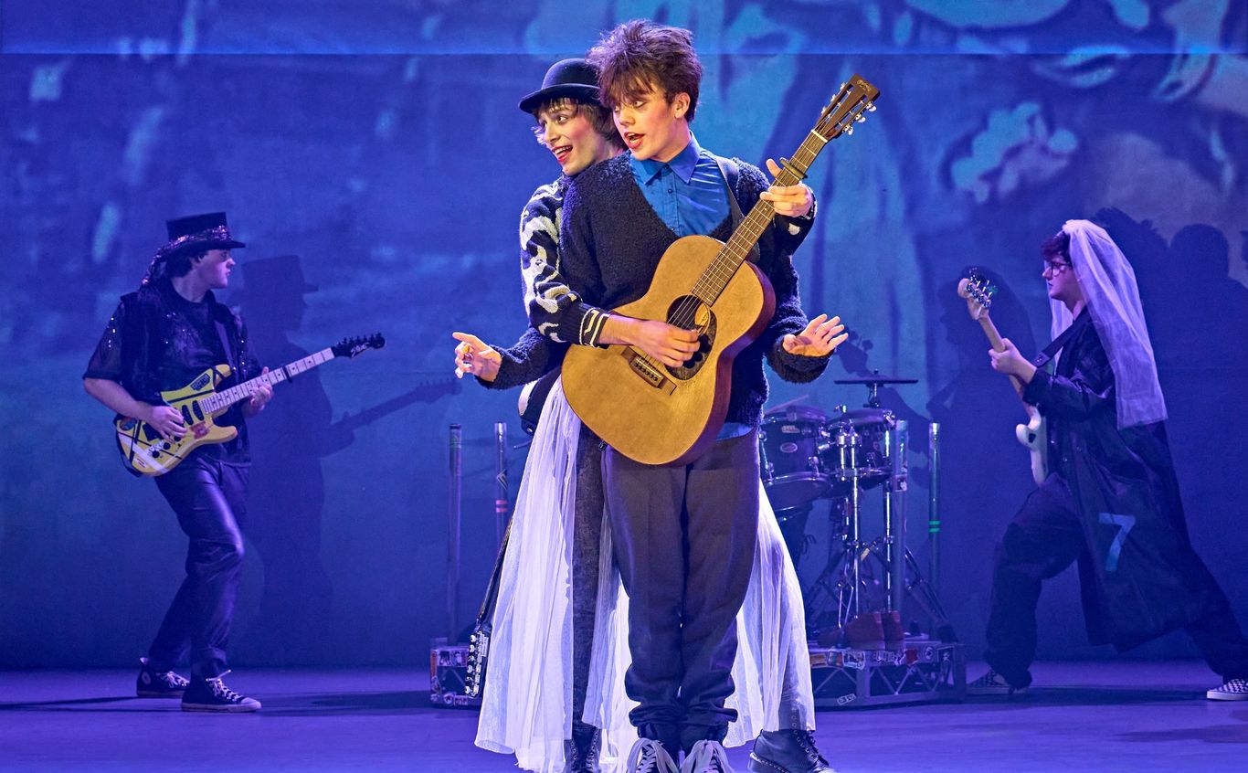 While we’re used to performers playing younger than their age, the cast here brings a genuine youthful energy, helped by the fact that many of them are actually young. Seb Robinson (Kevin), for instance, only completed his A Levels last year. Most of the band members appear to be current students or recent graduates, a brave casting choice that absolutely pays off. The entire cast plays their instruments live on stage, and while I suspect some may be musicians first and actors second (based on the programme), there’s no faulting their performances.