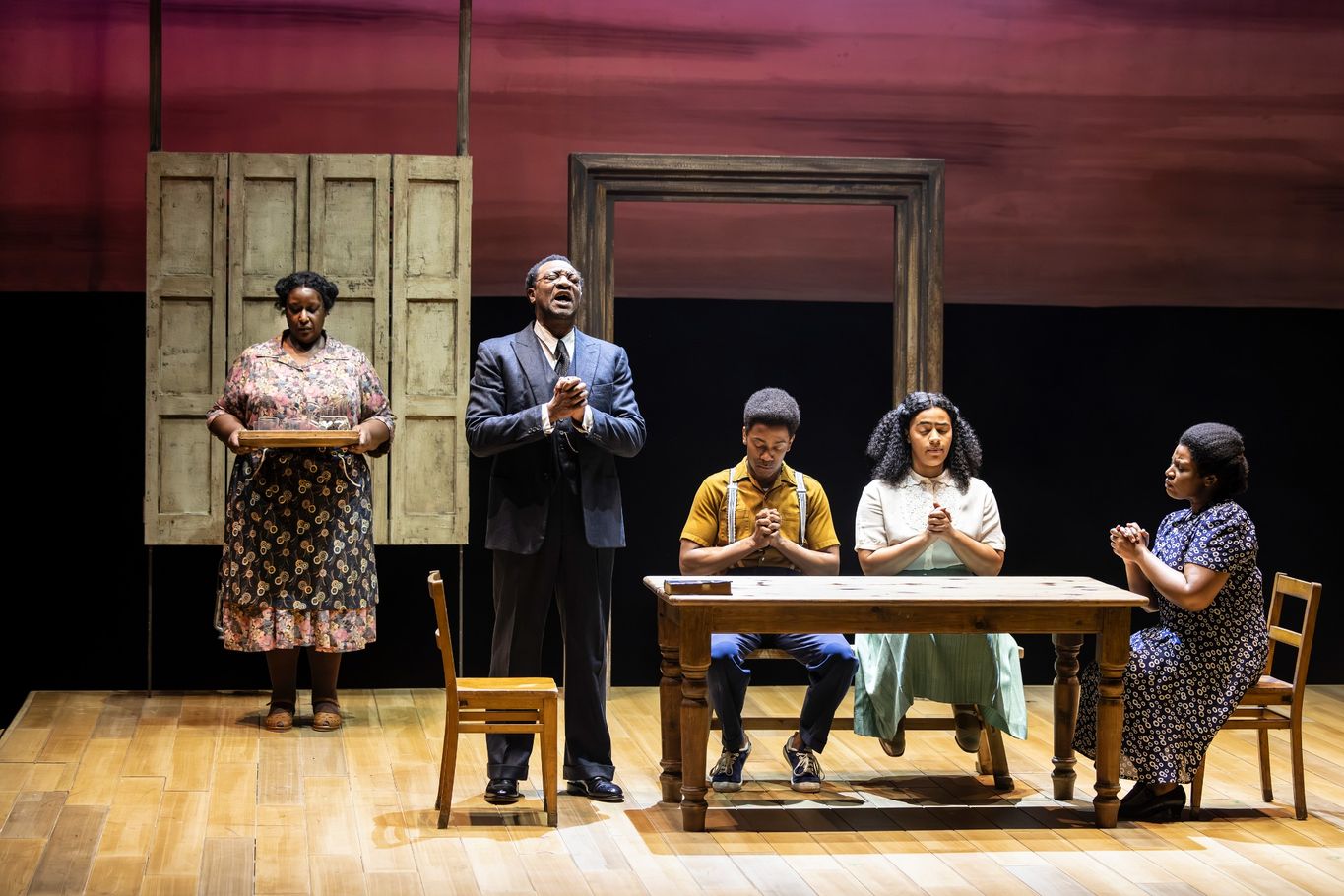 Visually, the production is striking and inventive. The staging (Simon Kenny) makes excellent use of a revolving, wood-panelled set that shifts seamlessly between Jamaica and post-war Britain. This fluid design allows scenes to transition with cinematic ease, maintaining momentum while also reinforcing the idea of interconnected lives and shared histories. At times, the movement of the set becomes a storytelling device in itself, reflecting the instability and constant change experienced by the characters.