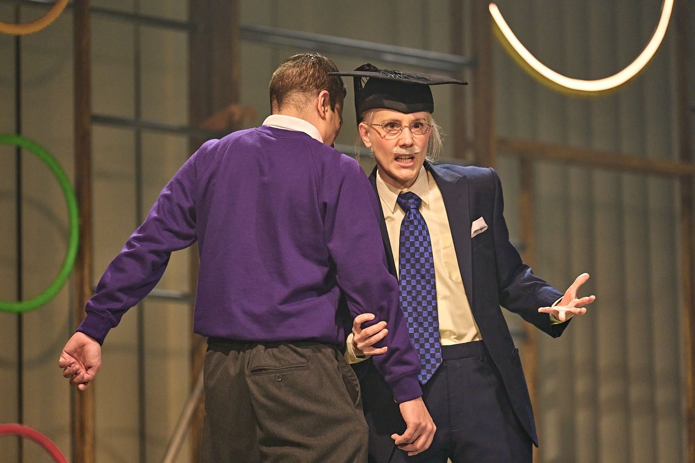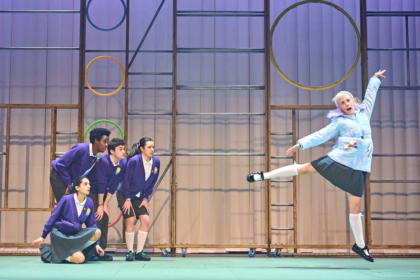 There is something powerful about adults playing younger characters, especially when they transform from grown up to child in a matter of moments during a scene change. It’s as if this was done purposefully, to demonstrate how the younger generation view ‘adult’ topics, and their refreshing inquisitiveness around these issues. Lily Arnold’s designs breathe life into this idea by creating a realistic school setting that is fluid enough to also embody the more abstract states in the play. A multi-use backdrop (constructed by Four-Square Productions) facilitates some of epic movement sequences, and uses magnetic props that are regularly swapped and re-invented, filling the whole space with nostalgic textures and objects that take you straight back to your own time in year 5. A huge mention also has to go to the entire stage management team as every transition in the show was so seamless and incredibly time efficient.