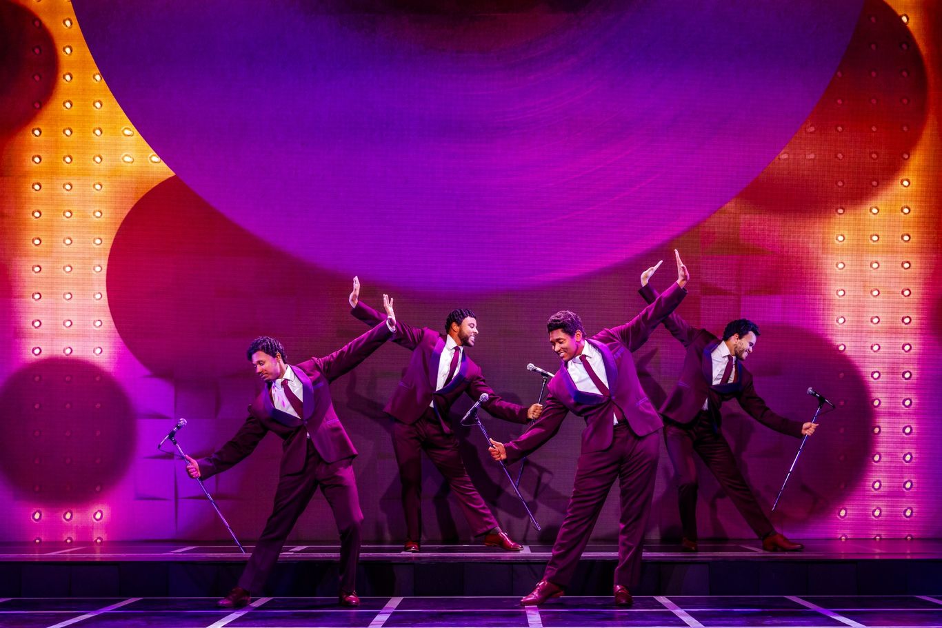 Playing parts including The Drifters are musical theatre stars Ashford Campbell, Miles Anthony Daley, Tarik Frimpong and X Factor Winner Dalton Harris. These talented men combine flawless vocals with incredible energy and acting, with sincerity and impeccable comic timing. The vocal group appeared to have been performing together almost as long as The Drifter’s themselves as the harmonies between them were impressive. Campbell in particular stood out for the right reasons with his emotive nuances and portrayal of his characters. Campbell’s vocal truly is the highlight of the show belting ‘Under The Boardwalk’ to the back rows. Jaydah Bell-Ricketts plays the role of ‘Girl’ and performs well with the limited material and time she is given on stage.