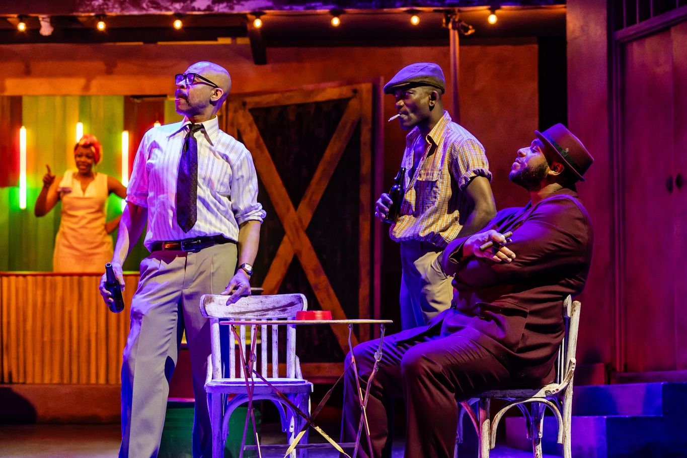 Director Matthew Xia’s staging is bold, colourful and slightly rough around the edges – exactly as it should be. The set, with its makeshift corrugated tin backdrops, painted shutters and neon signage, evokes a Kingston that is buzzing and chaotic, a place where hope and danger rub shoulders. Scene changes are slickly choreographed and often punctuated by live music, giving the whole show a seamless, party-like flow.