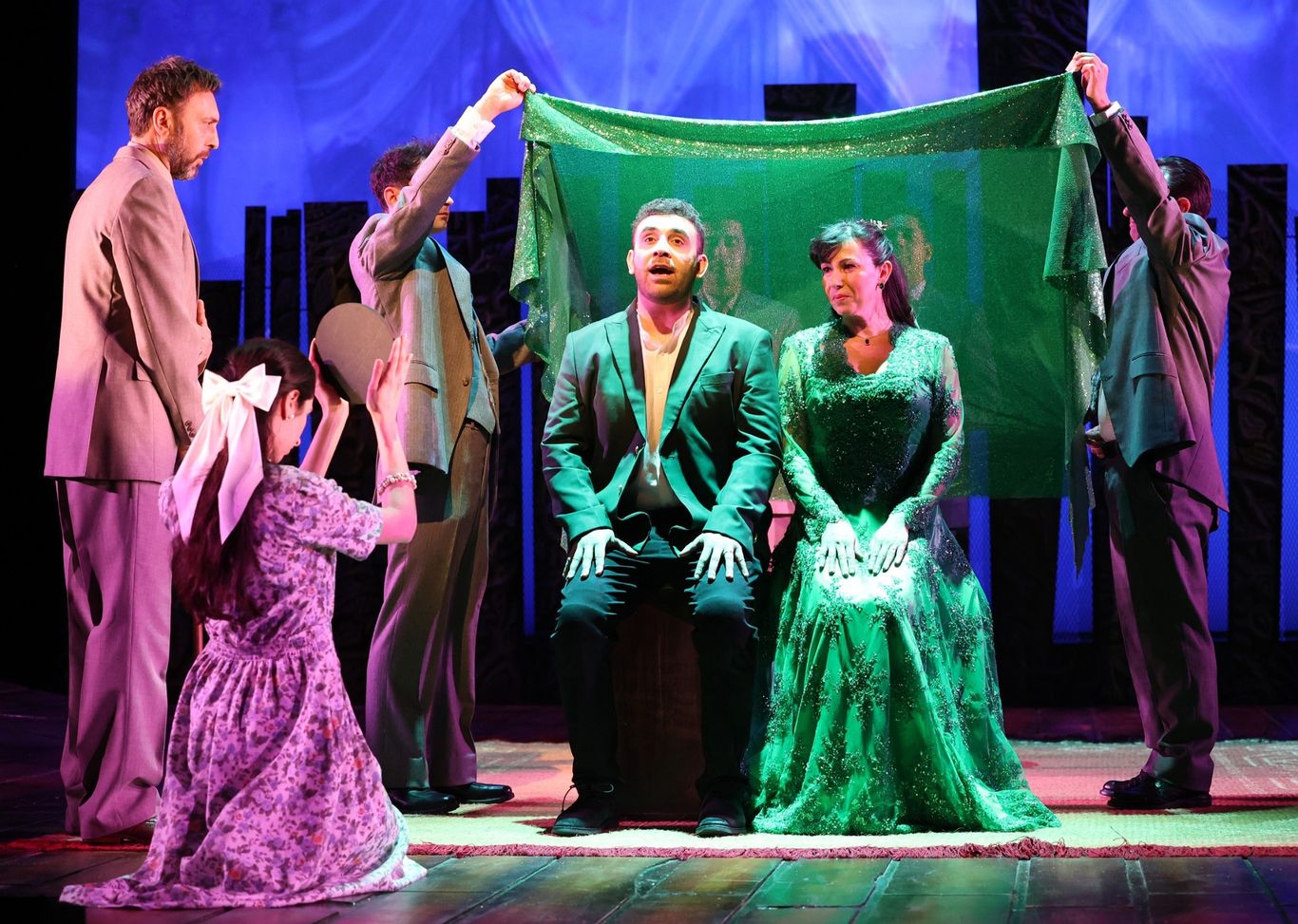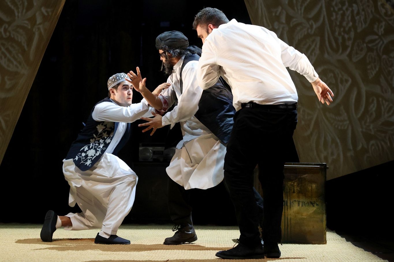 There was a simple, yet very effective set which is curved at the sides to allow our kite runners to do a lot of running, particularly in the first act. There are some beautiful ‘sails’ that go up and down, to portray pomegranate trees, tent sides, and other effects. It is really very clever.
