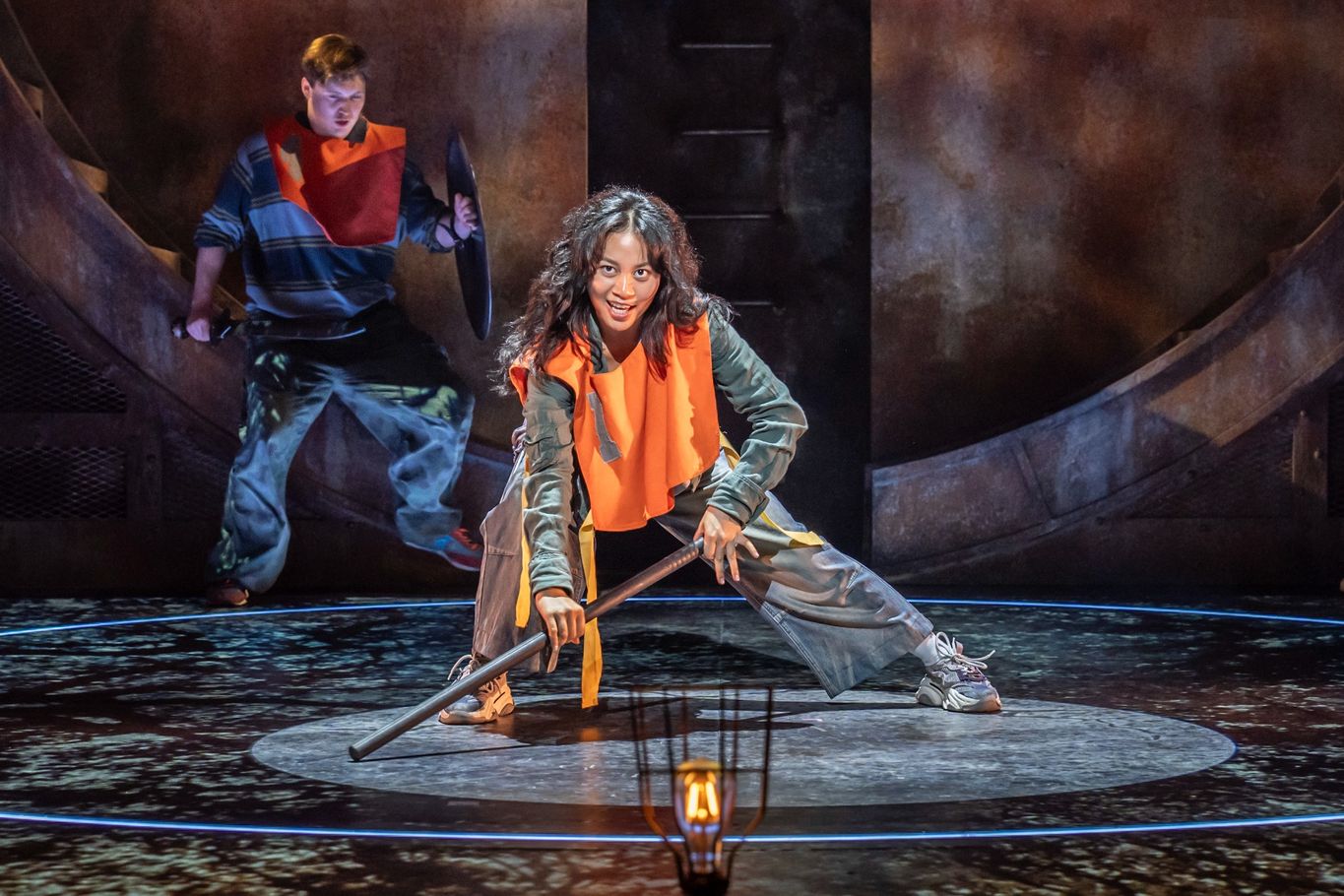 Visually, the production is impactful. Ryan Dawson Laight’s set design, a fusion of rusted, industrial structures, becomes a playground of possibilities — reimagined and repurposed in clever ways throughout. Although, his costume designs, while thoughtful, don’t quite reach the same level of creativity that the set and props achieve.
