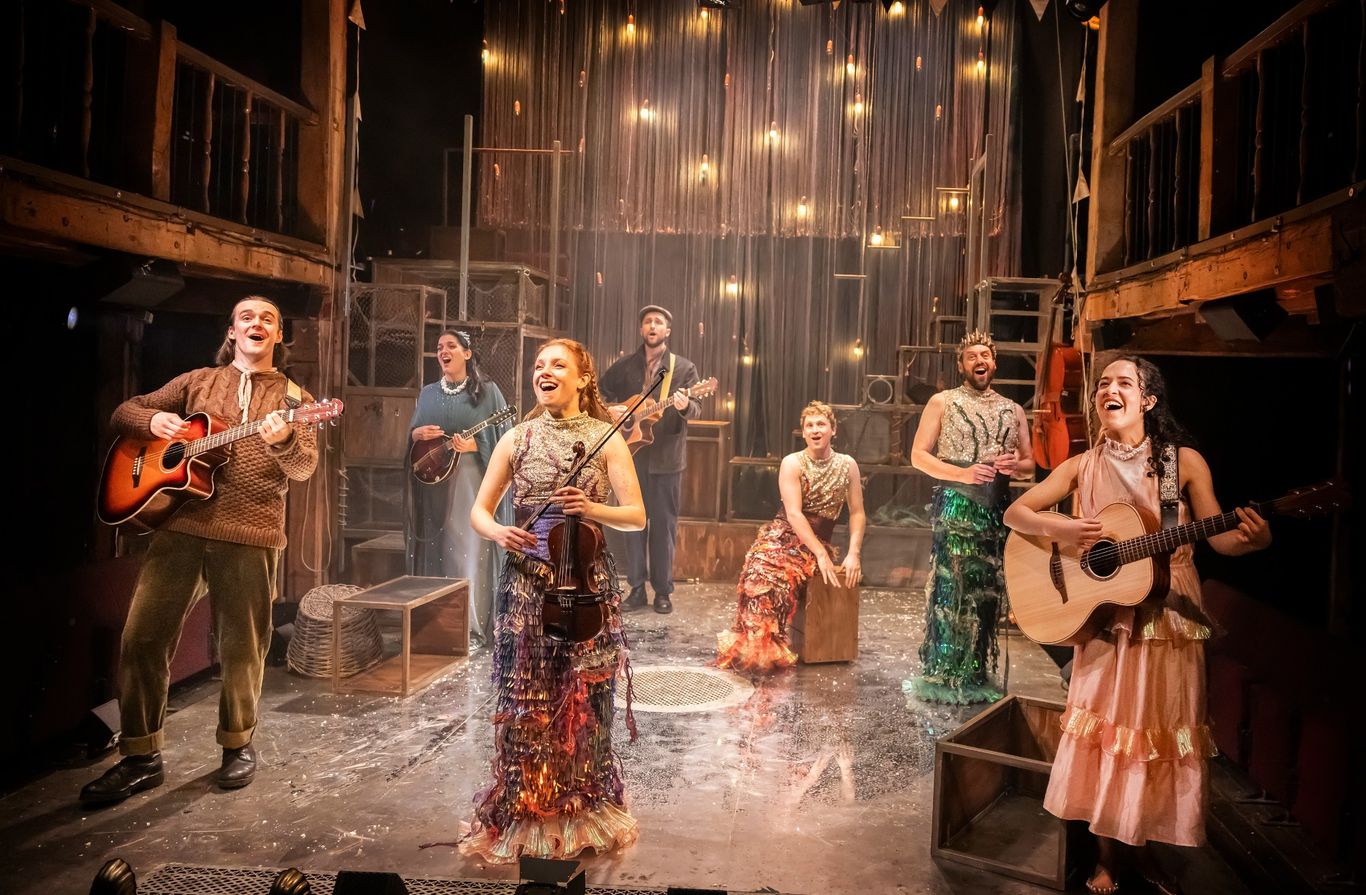 This is another of the Watermill’s actor musician productions. And as ever, it’s incredibly successful. The Cornish sea shanty’s and mermaid’s songs are performed by this talented cast of just 7 (with one swing) with onstage musical director. All the actors play a variety of instruments from violins, to double bass to penny whistles and guitar and drum boxes, all whilst acting, singing, dancing and making us laugh!