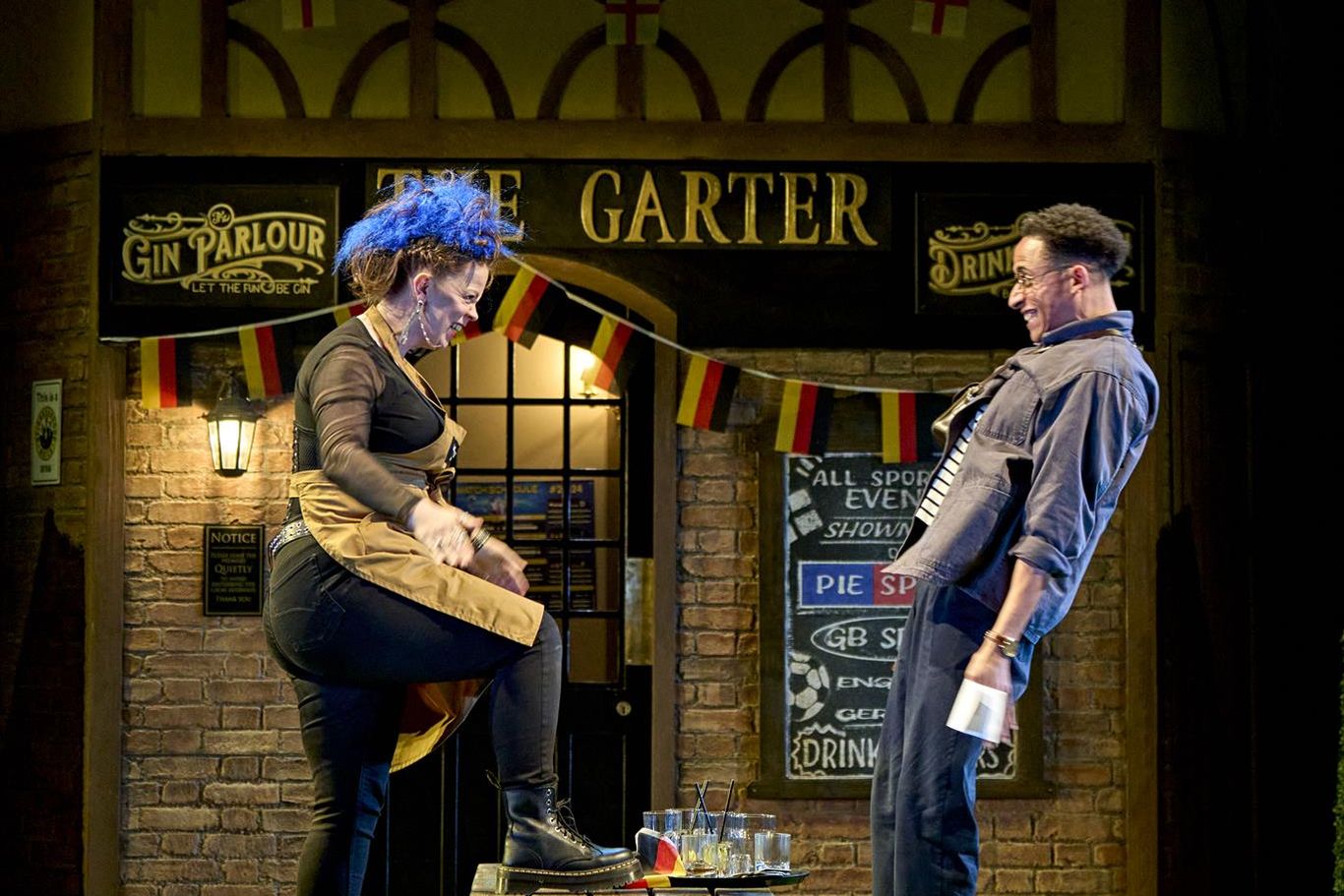 John Hodgkinson plays Sir John Falstaff with a great mix of sleazy and misogyny, we even felt a bit sorry for him in the end, as realisation hits him. Siubhan Harrison as Mistress Alice Ford and Samantha Spiro as Mistress Meg Page have a very natural rapport and work well as the two Windsor wives plotting against Falstaff. Their ability to show the female agency at its strongest when showing men just how ridiculous they are behaving is just perfect.