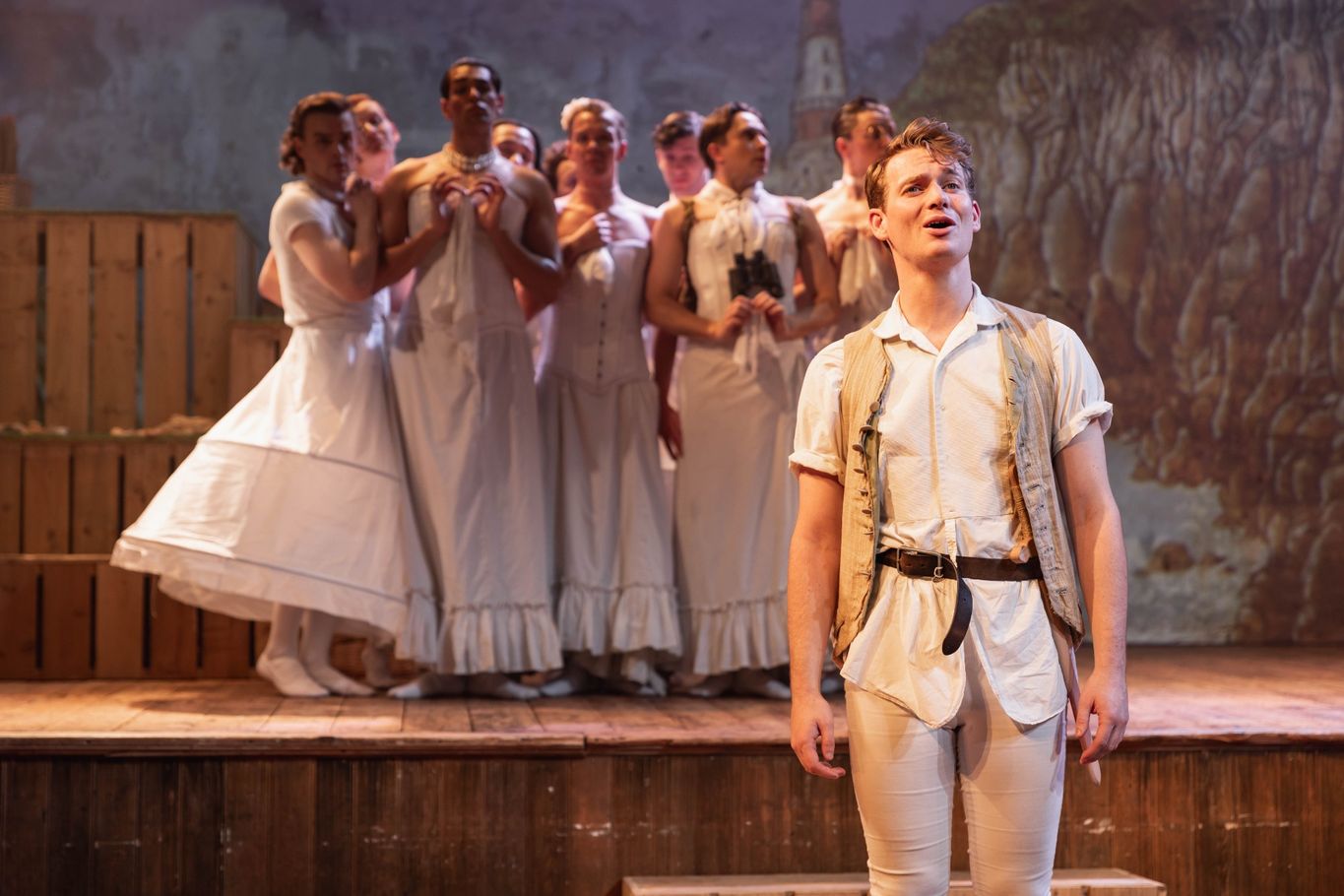 There is an air of expectation in the Wilton’s Music Hall for this all-male performance of Gilbert & Sullivan’s The Pirates of Penzance. This particular production, directed by Sasha Regan, was first performed in 2009 at the Union Theatre and continued to be performed for the next decade. It clearly has a following and has been taken to the heart of G&S fans, and from the outset it is easy to see why.