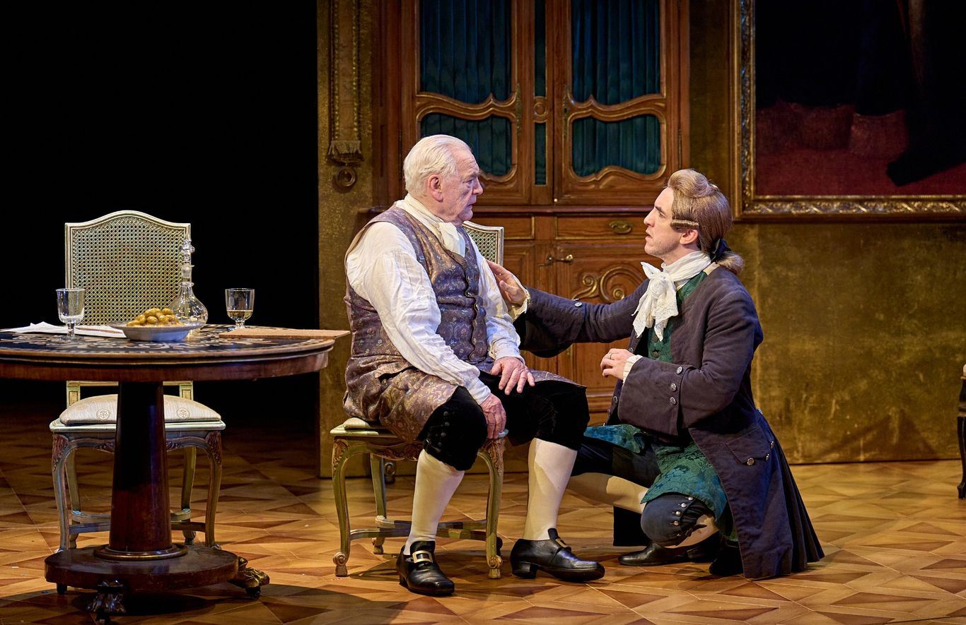The Score fits in well at the Theatre Royal Haymarket, which is one of the oldest venues dating back to 1720 and coincidentally is just a few decades before this true story actually happened in Prussia, 1747. Set on a stage raked with such a steep incline, it’s difficult not to worry about acting legend Brian Cox rolling right off into the audience, although as expected, the ‘Succession’ star keeps confidently composed and thankfully, upright throughout. Oliver cotton has written this new and quirky play, retelling the feud between Johann Sebastian Bach and King Frederick the Great, also known as Frederick II of Prussia. Being wildly contrasting in their beliefs on politics, religion and war, both gentlemen eventually discuss their differing views and enlighten the audience of the inspiration for one of Bach’s greatest works. The script has been well written, with an admittedly slow start which accelerates as we get further into it, yet falls flat. You could say the delivery was not exactly music to our ears. But how can this be, with a glittering cast and creative team?
