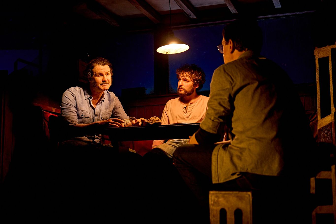 Firstly, this is an acting masterclass by each performer. Ian Shaw (co-writer) who portrays his own father Robert Shaw in the play is quite simply magnificent. Every line spoken with such grit, his spiral with alcohol and his heart wrenching story of his father’s suicide both reigned in the humour to provide show stopping moments. Dan Fredenburgh as Roy Scheider offered a more subtle performance, being the calm in the craziness that ensues between Shaw and Dreyfuss, played with such energy and bravado by Ashley Margolis. This 1 hour 30 minute straight through play sped by, showing how captivating the performances and dialogue was.