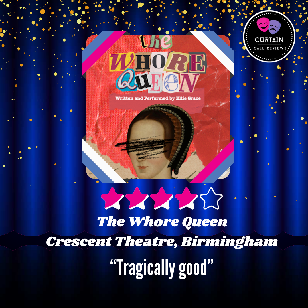The Whore Queen is part of Birmingham Fest 25 which continues at venues across Birmingham until 27 July. This show was reviewed on the 25th July 2025 at the Crescent Theatre, Birmingham.