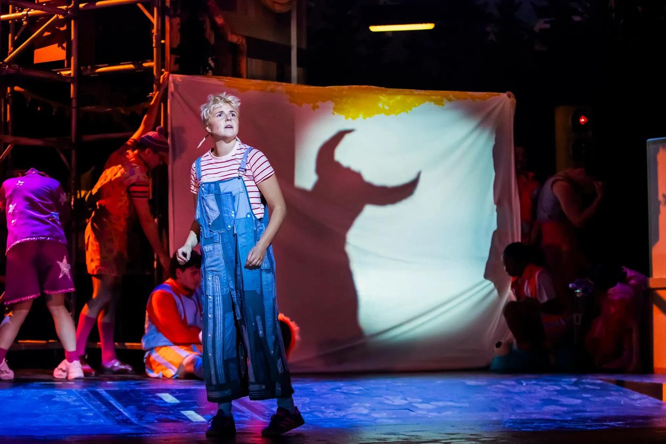 The performances are all well done, the cast work well together to bring this fictional world to life. The ‘Creakers’ are highly talented in both puppetry and vocal skill. It’s very much an ensemble piece though there are some stand out performances, Ally Kennard as Norman gives the perfect representation of a kid who struggles to fit in and find their place. His vocal talent is unmatched in the cast and his big solo number ‘Badges’ is great fun! Iona Fraser is a delight as ‘Ella’ spoiled rich girl who realises there is more to life than material objects. Ella is funny and adds a great comic relief to the piece.