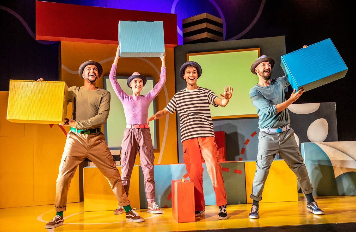 At the top of the show, the cast introduces themselves and their personalities, one by one. The audience enjoyed waving back at the performers, especially when one cheekily faced away, shaking his behind. This is a magical introduction to theatre, where the cast teaches the audience about theatre call bells, when to take our seats, and when to applaud, with a sign to help guide us. They even introduced a member of the cast in a tech role, who also stepped on stage occasionally. While I would have liked a bit more theatre vocabulary, I think they struck the right balance, considering the target audience.