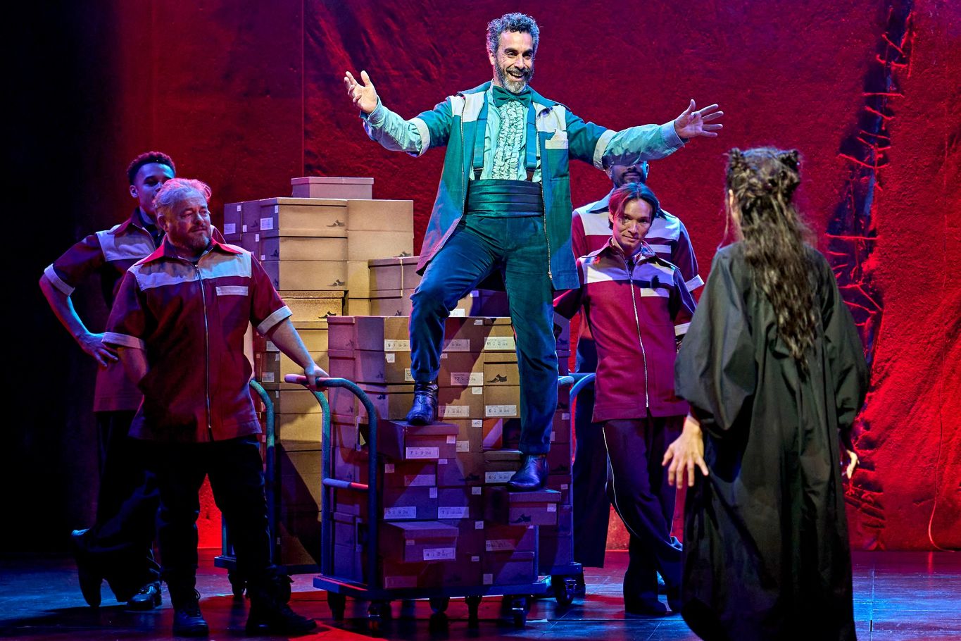 Sebastien Torkia, (Sylvestor/Priest), opens the piece with a mischievous start to the storytelling and places us firmly within the workings of his devious mind, and our dark surroundings.