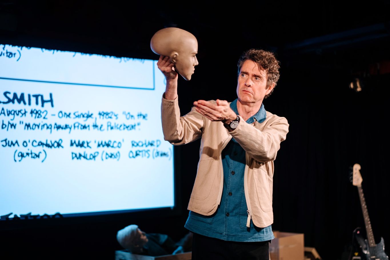 This is a Memorial Device is based on the novel of the same name by David Keenan, and it tells the story of a fictitious 1980s band from Airdrie with a cult following. The only live performer is Paul Higgins, playing the part of our narrator, Ross Raymond who tells us how he was there at the time, but only now gets what he was witnessing back then.