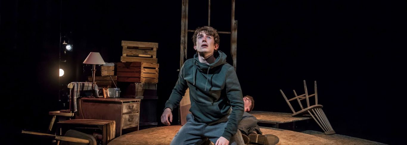 Due to Theatr Clwyd’s recent renovation project, the production took place in the temporary big top tent. This location worked perfectly as it gave an intimate and personal feel to the production, and as a member of the audience, I felt that I was fully part of Noble’s story. The stage was set up quite simply with tables, chairs and crates that were moved around by the cast themselves. Whilst the staging was fairly simple, it was the four actors who moved the story around beautifully, narrating lyrically which had a powerful impact on the audience. There was good use of sound effects and lighting to amplify the tension and atmosphere – with the added bonus of a storm going on outdoors, it really made the production feel tense and uneasy.